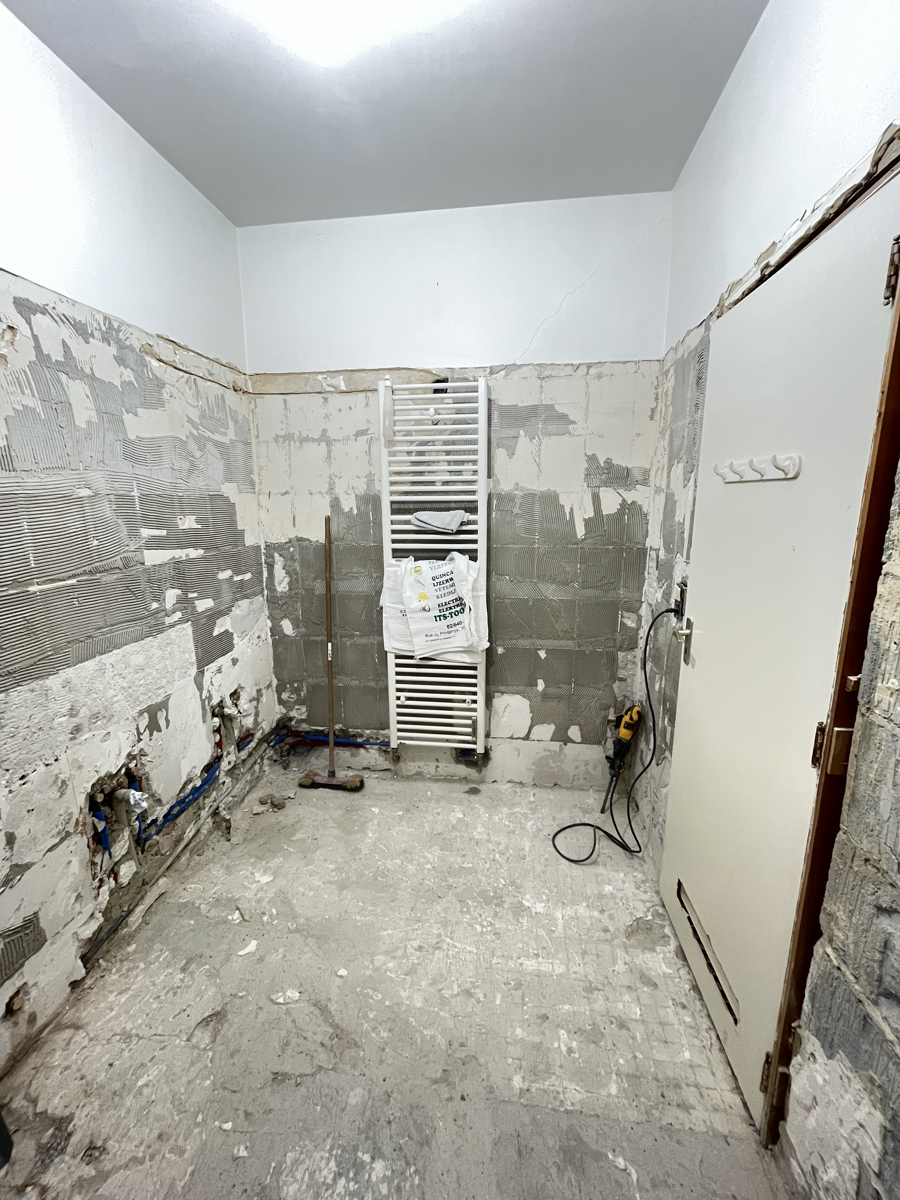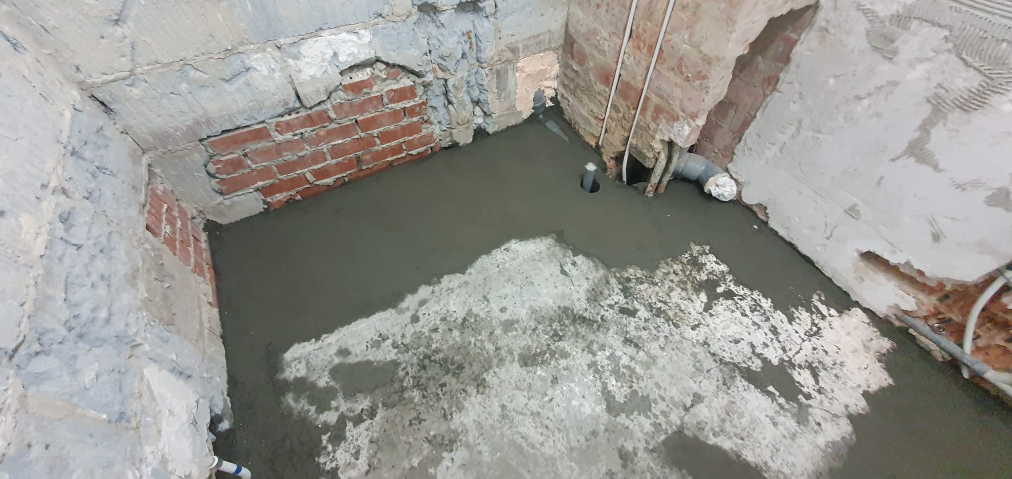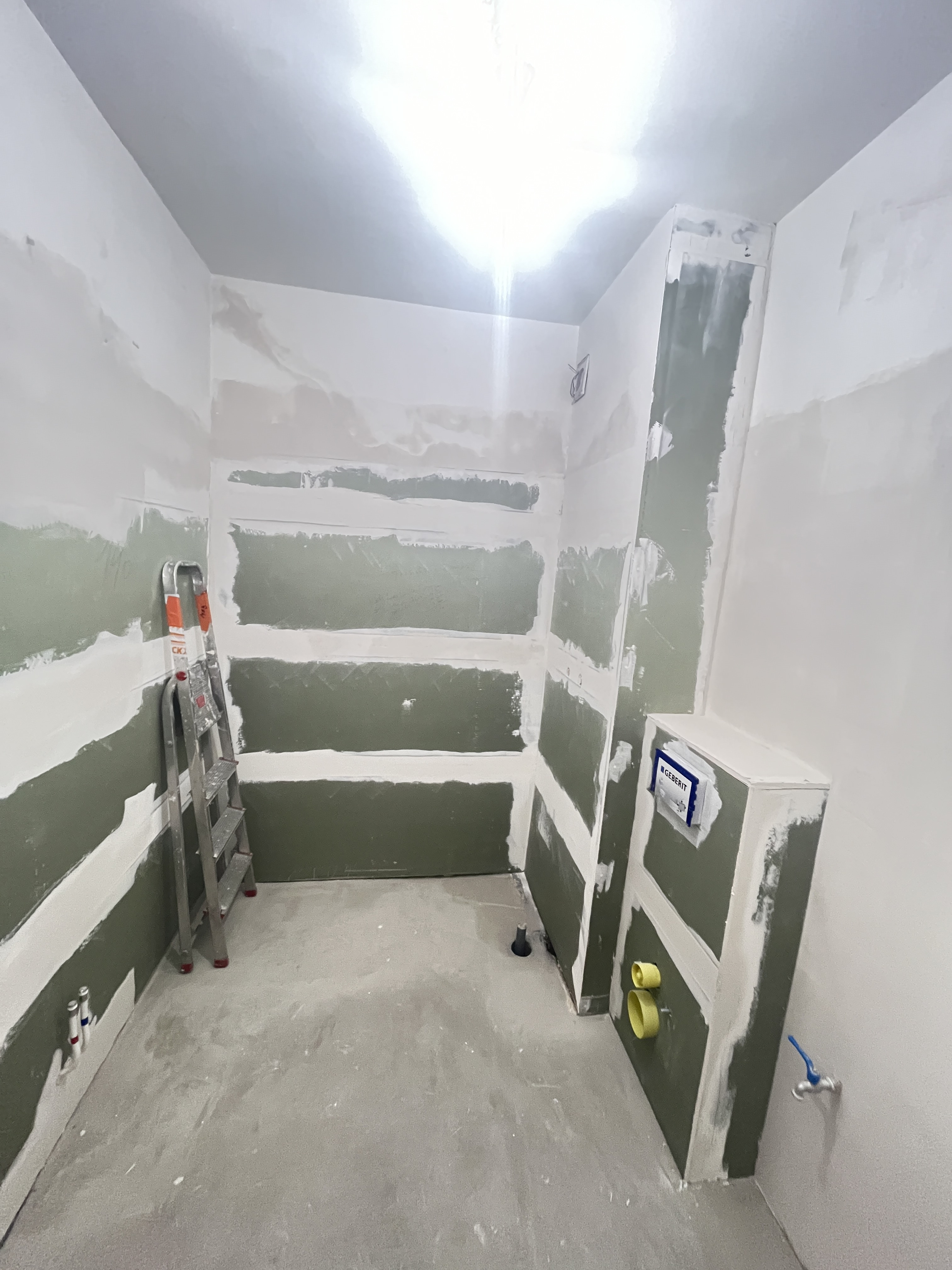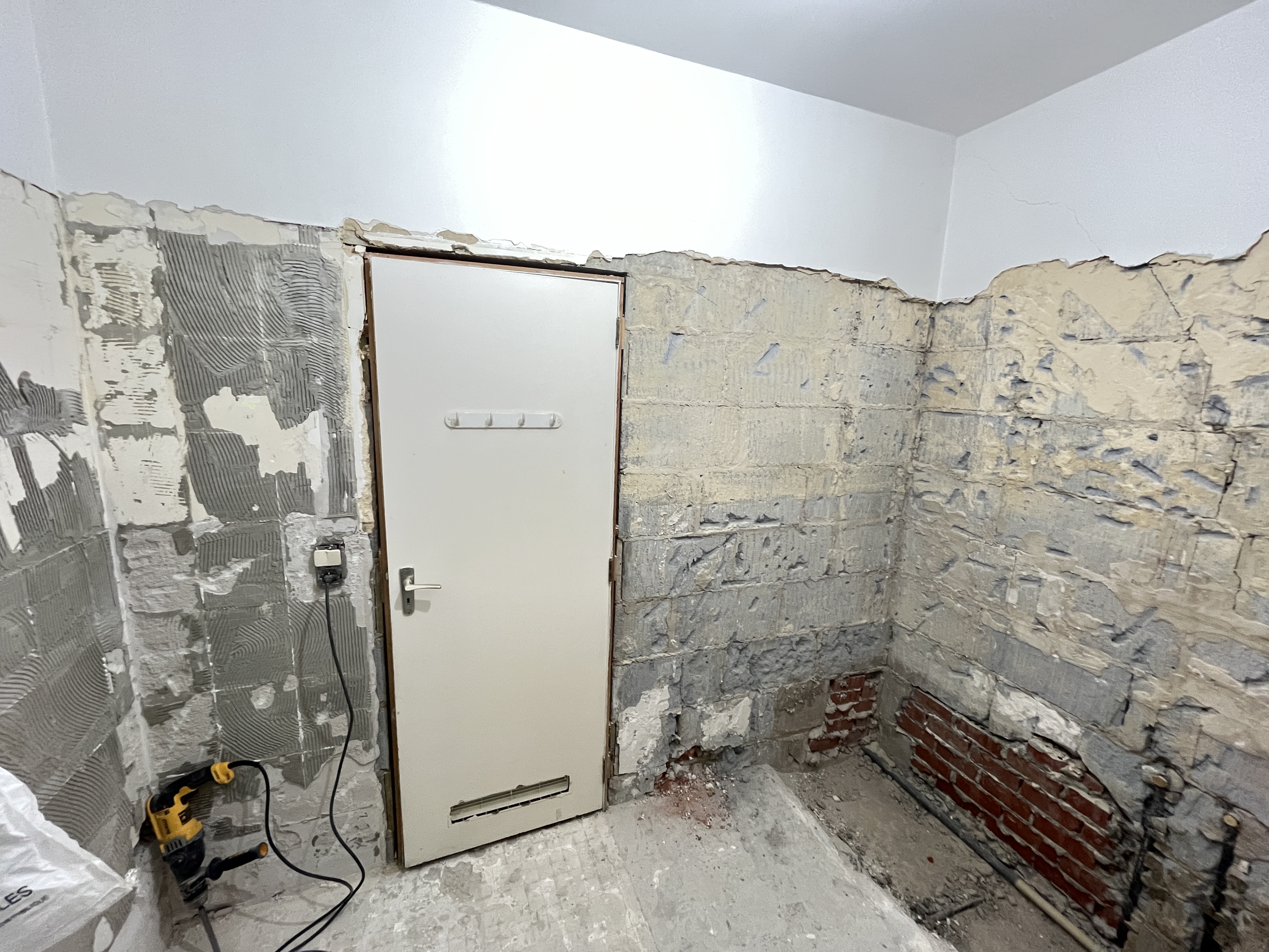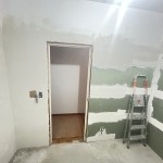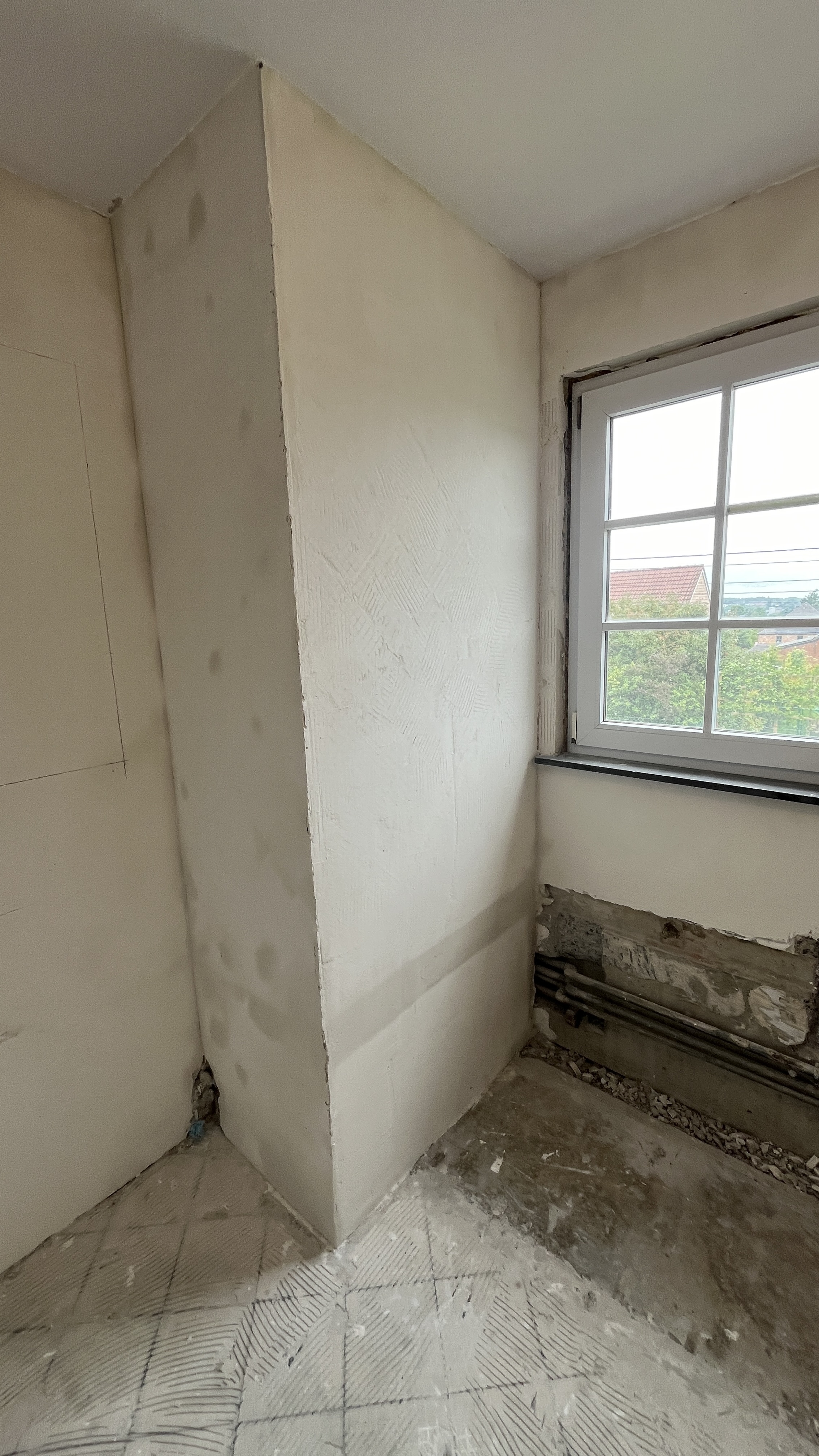 Isolation des murs mitoyens, pose de plaques de plâtre, création d'une dalle de béton armée.