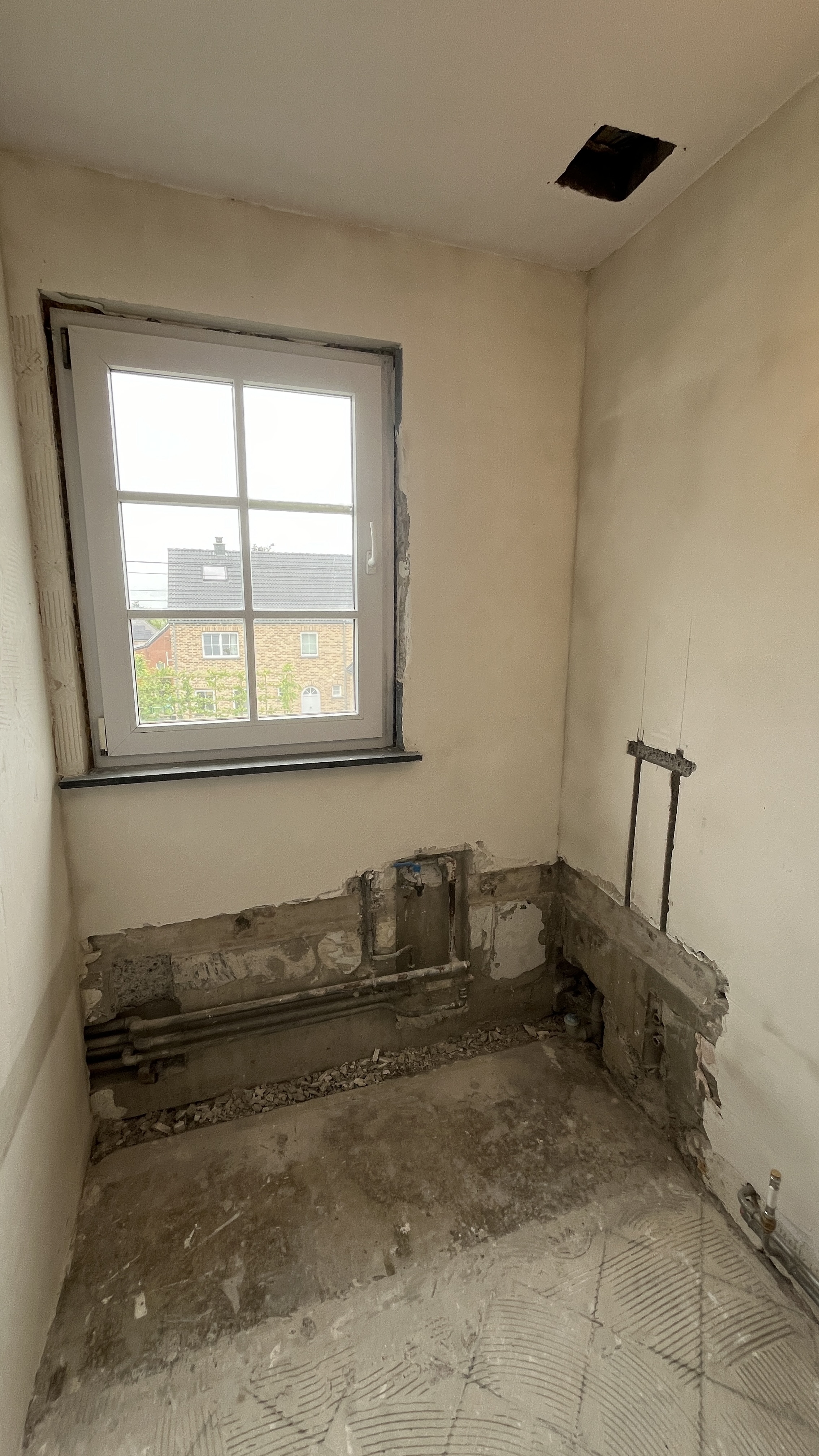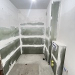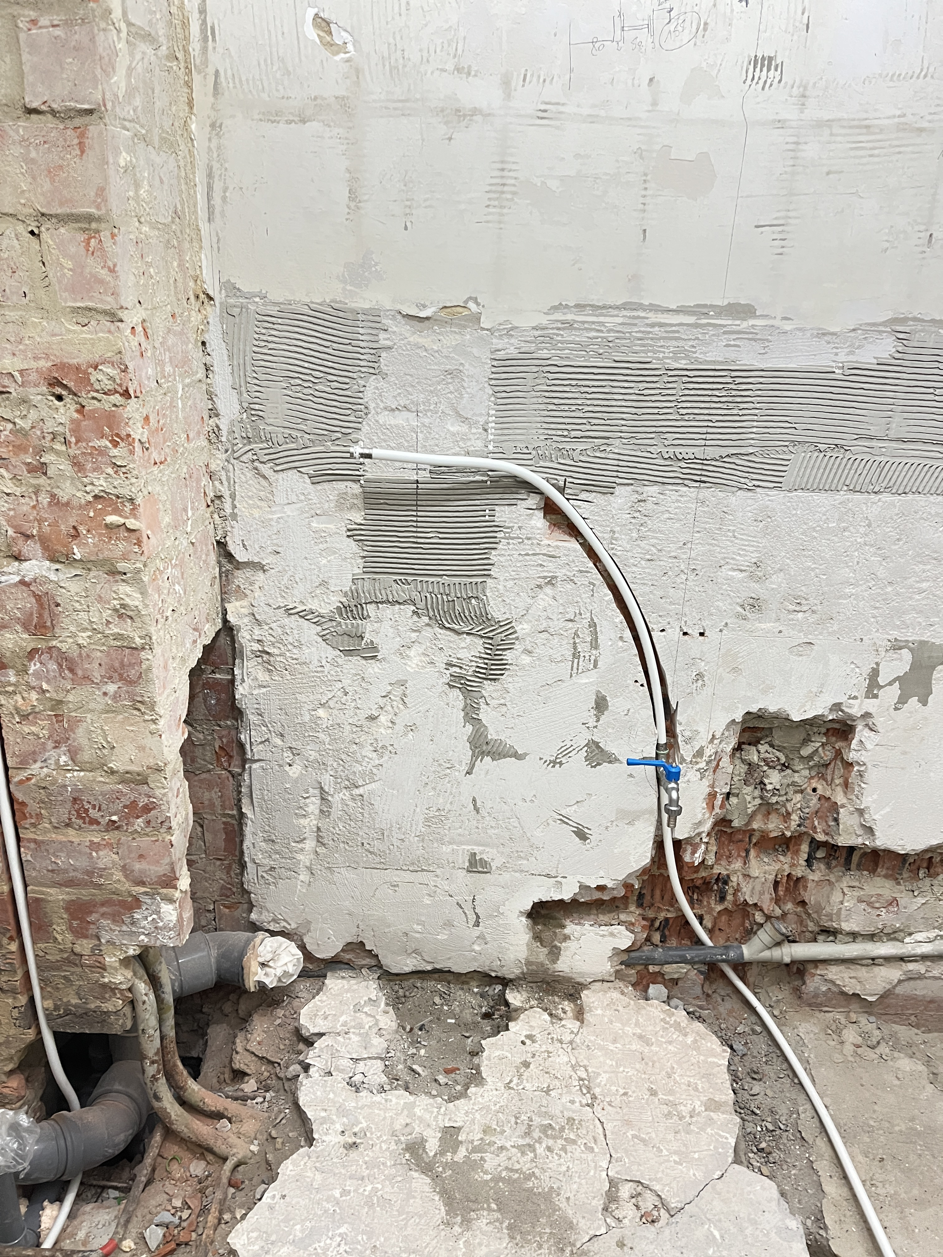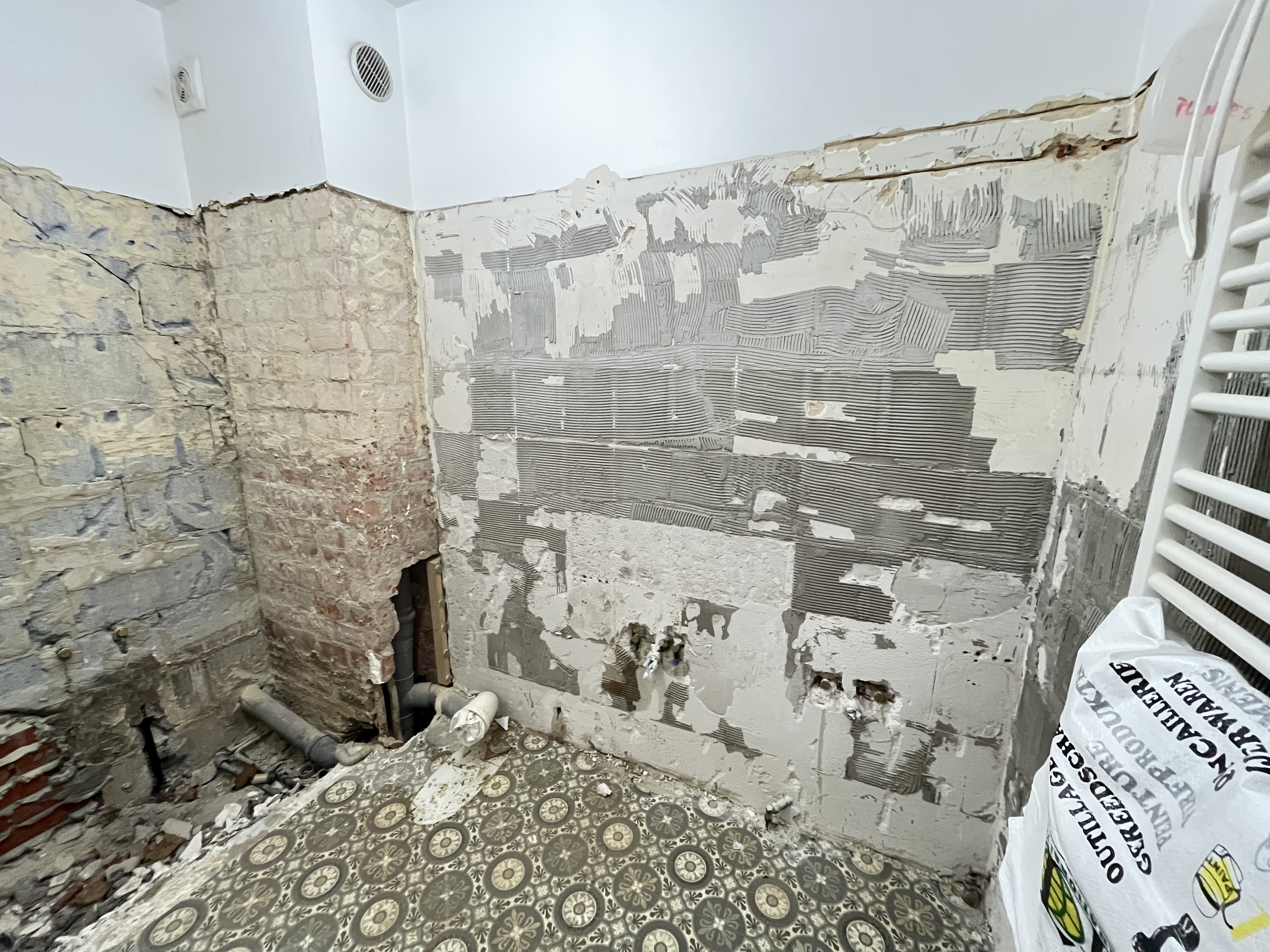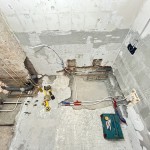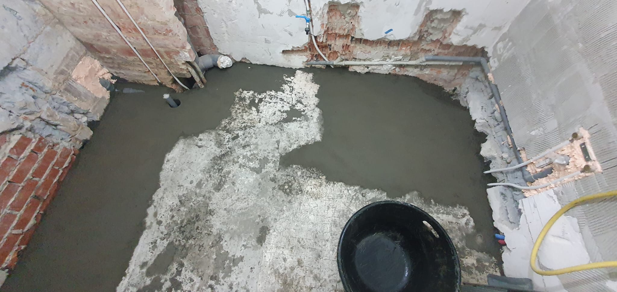 Isolation des murs mitoyens, pose de plaques de plâtre, création d'une dalle de béton armée.