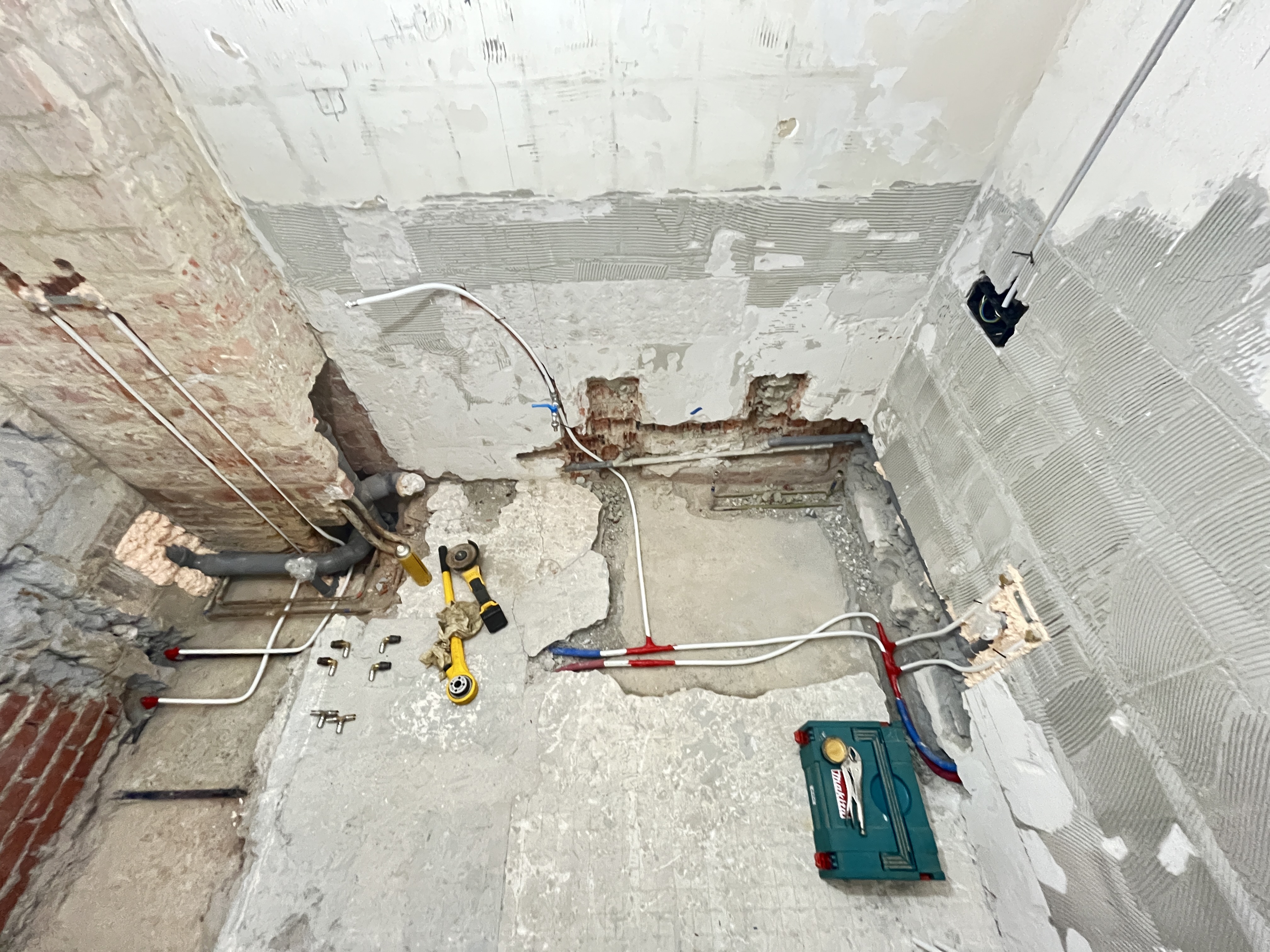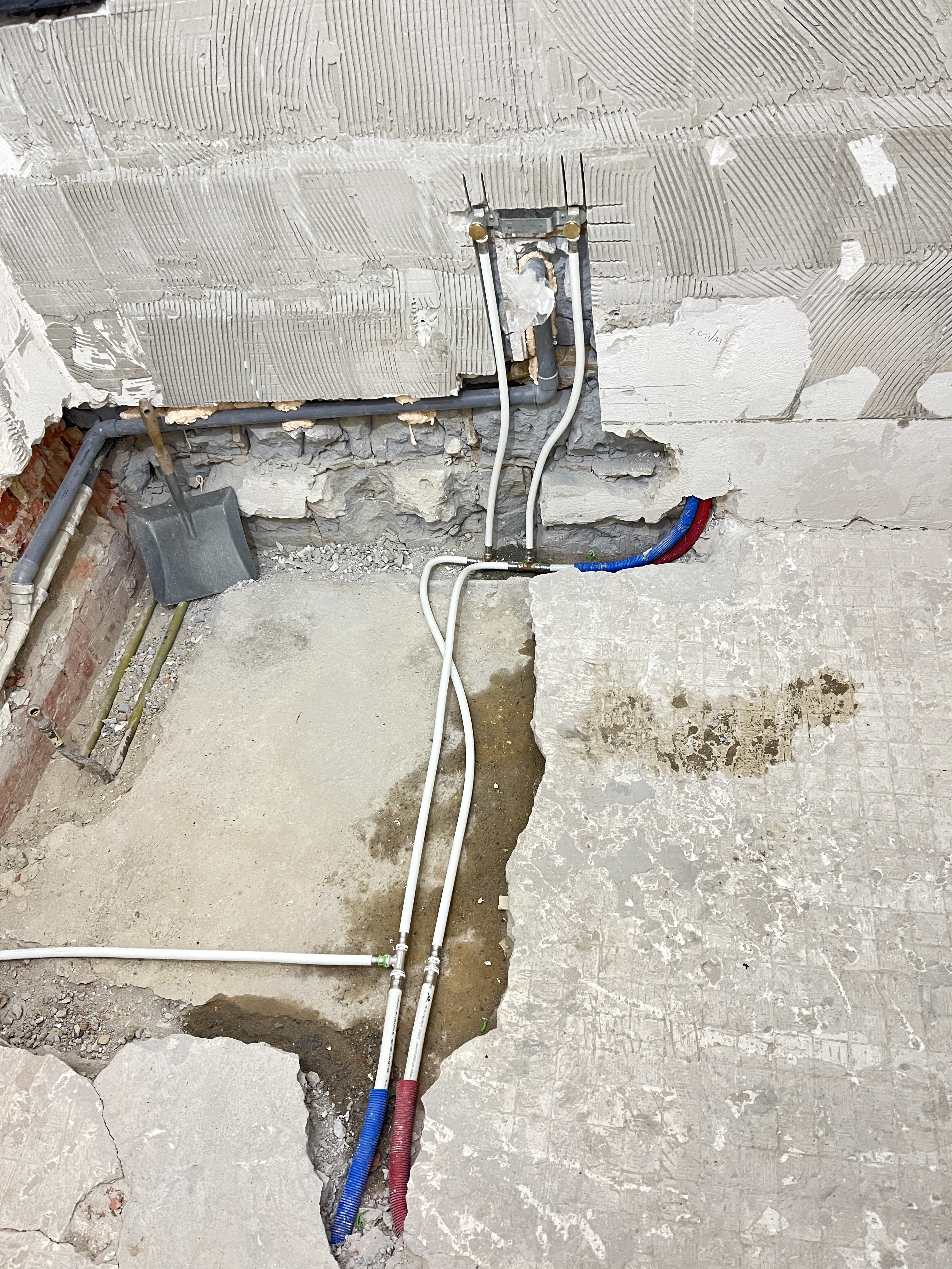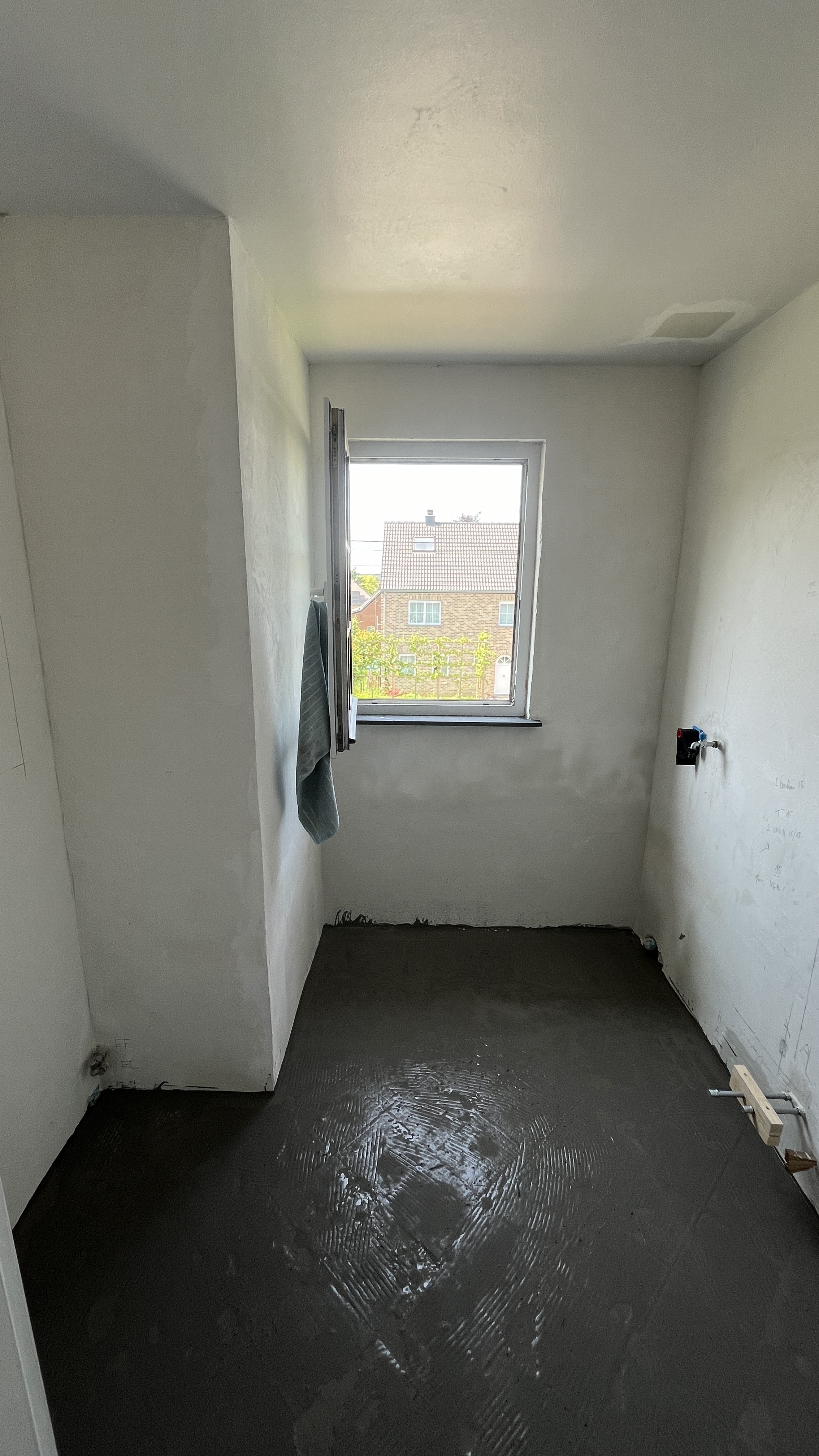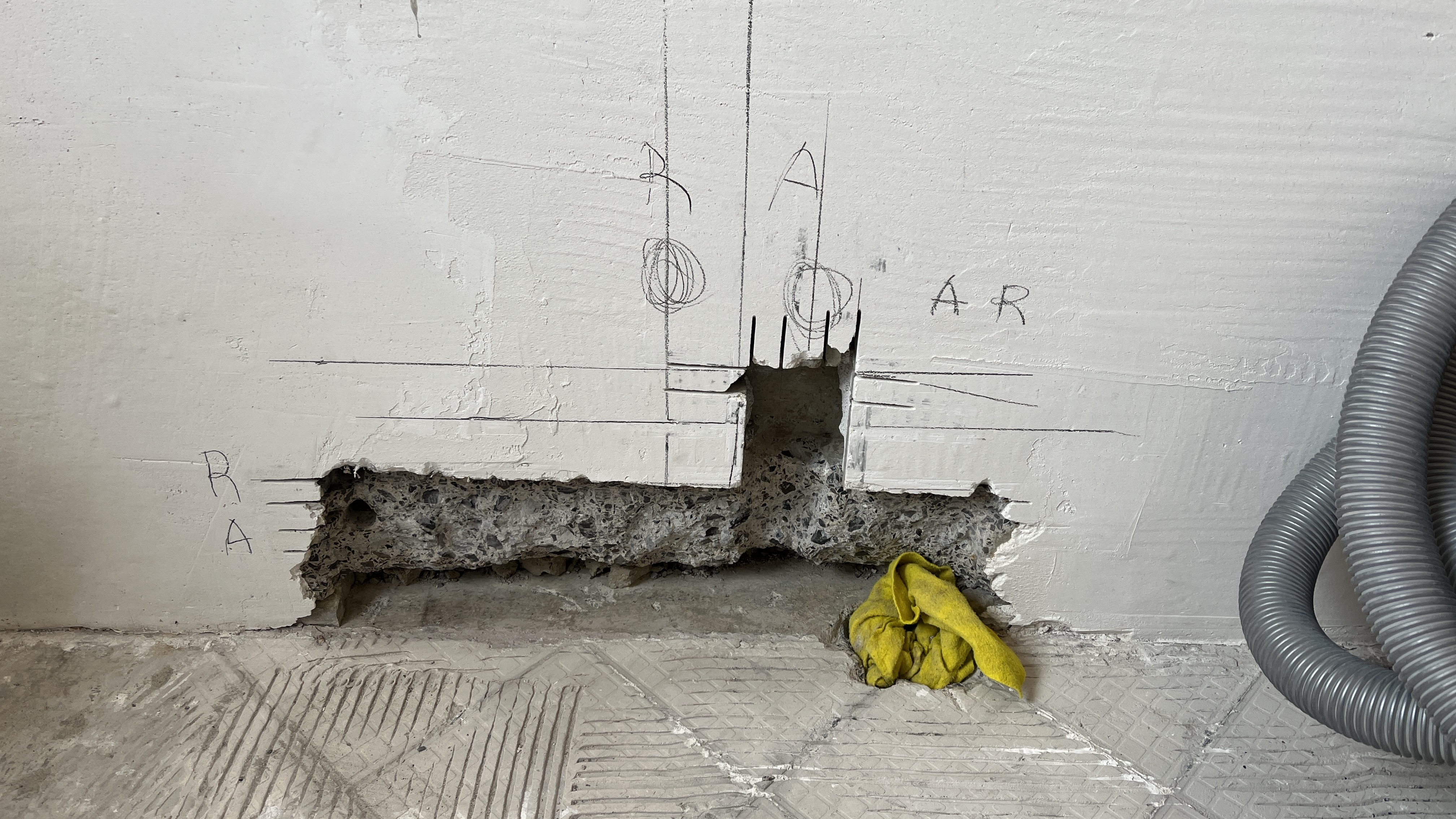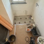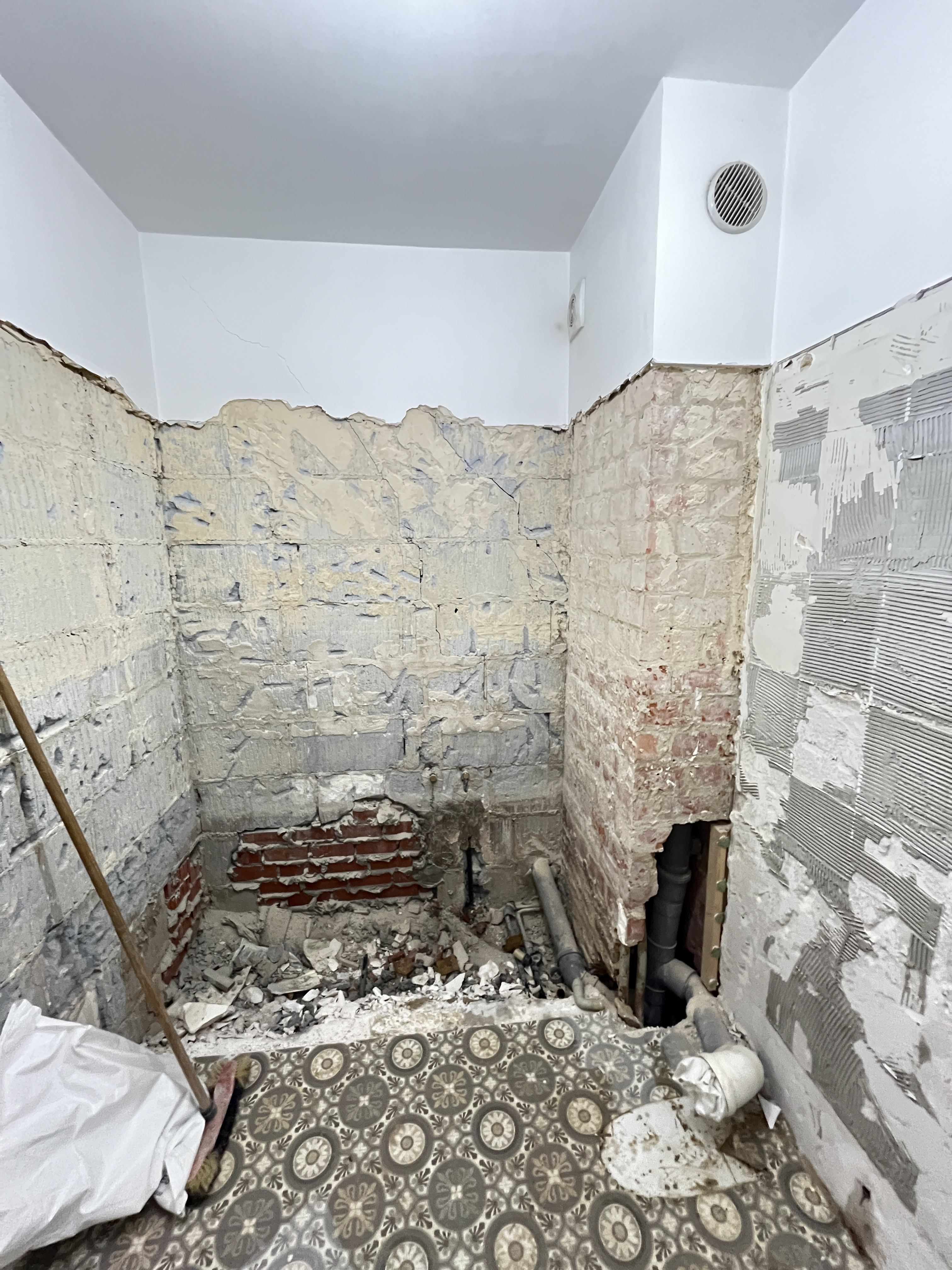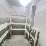 Isolation des murs mitoyens, pose de plaques de plâtre, création d'une dalle de béton armée.
