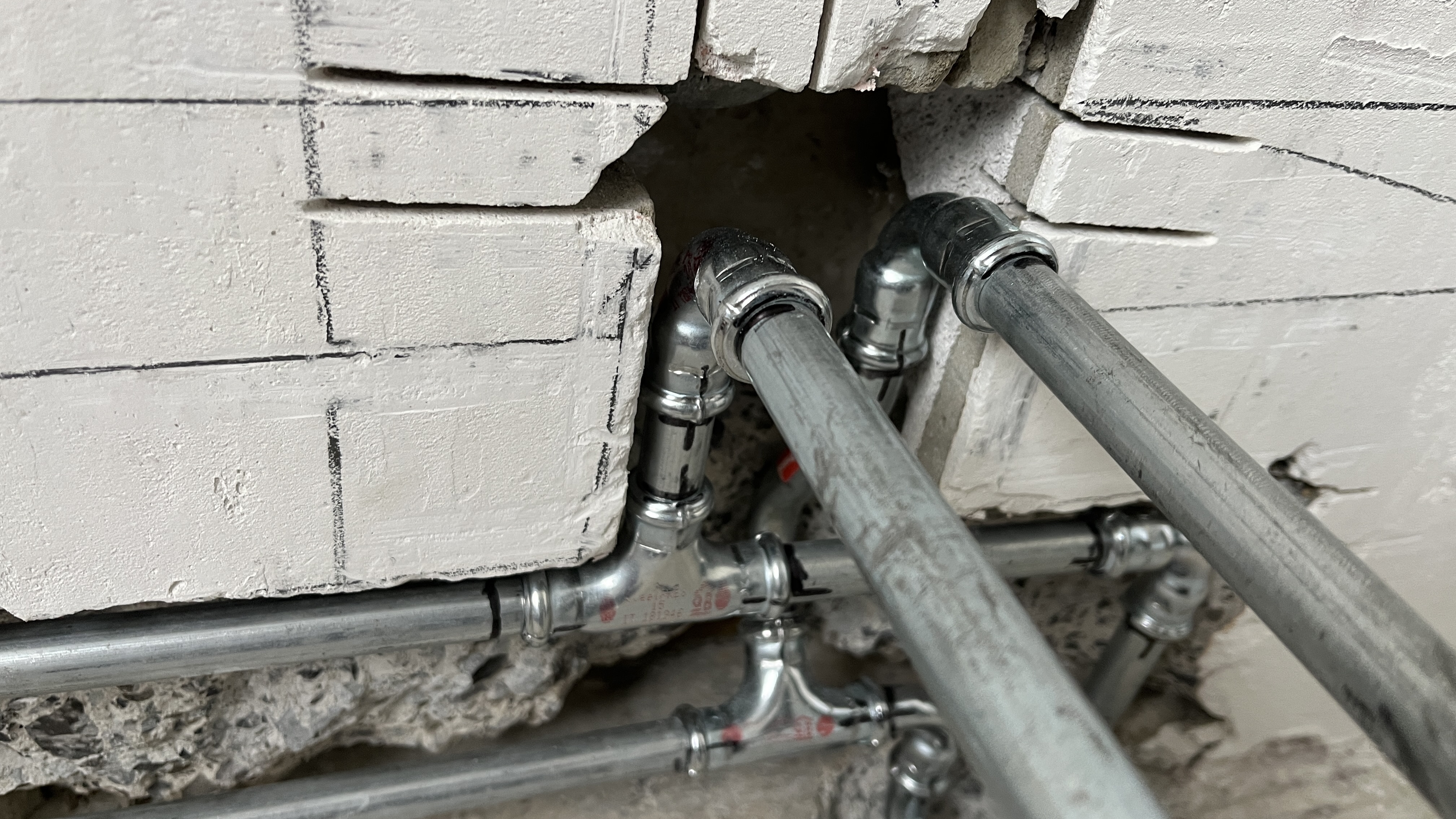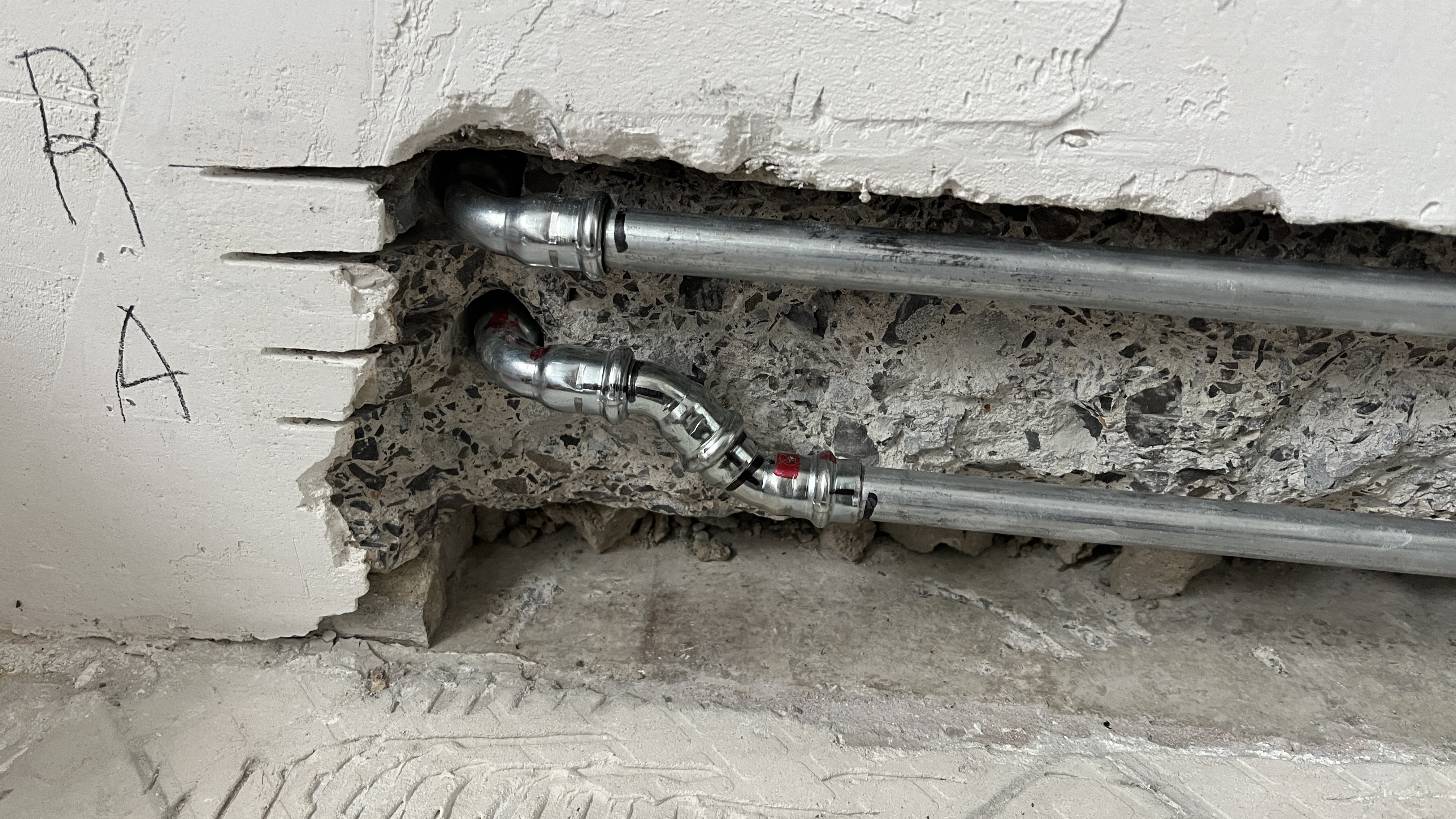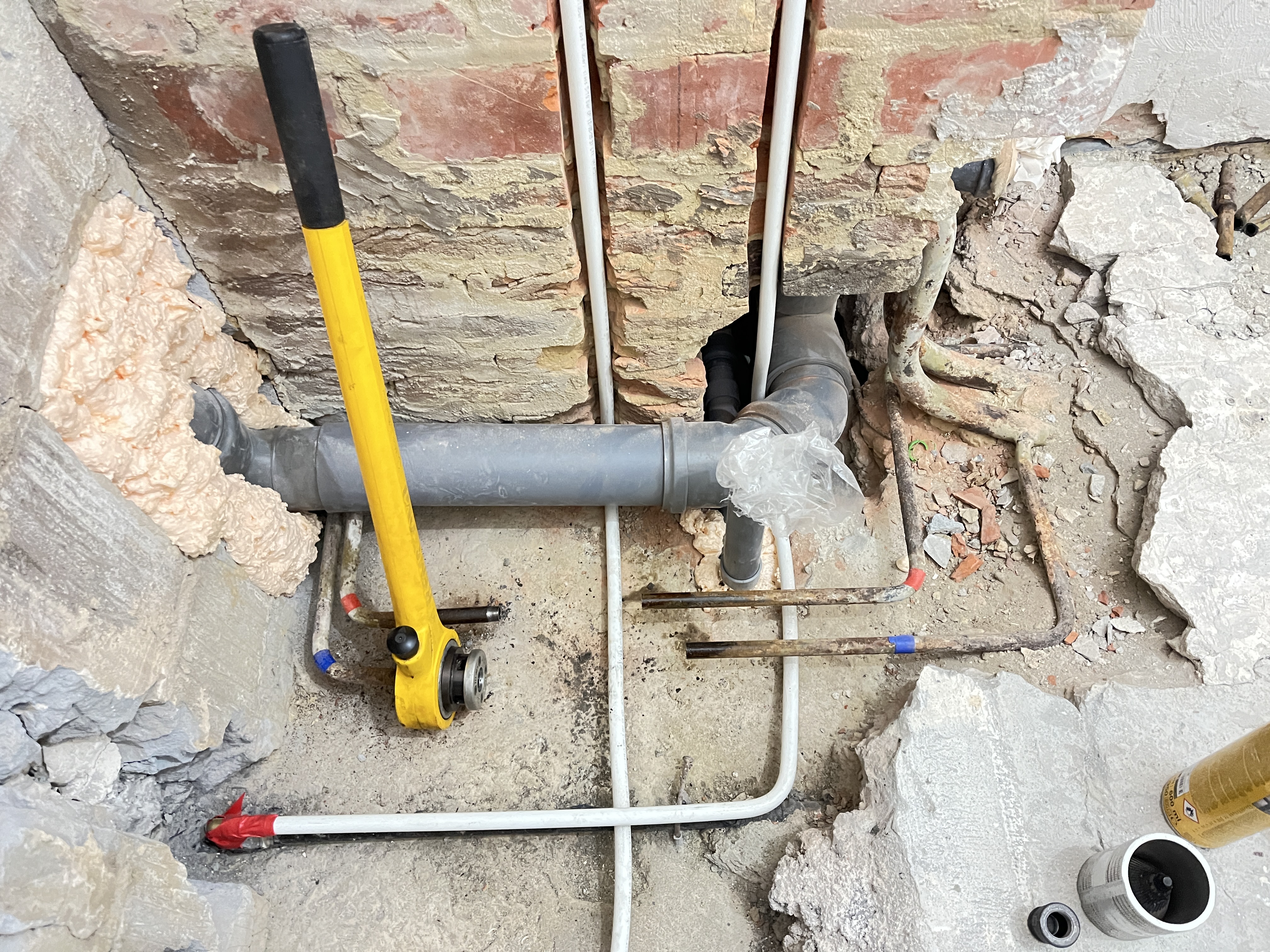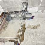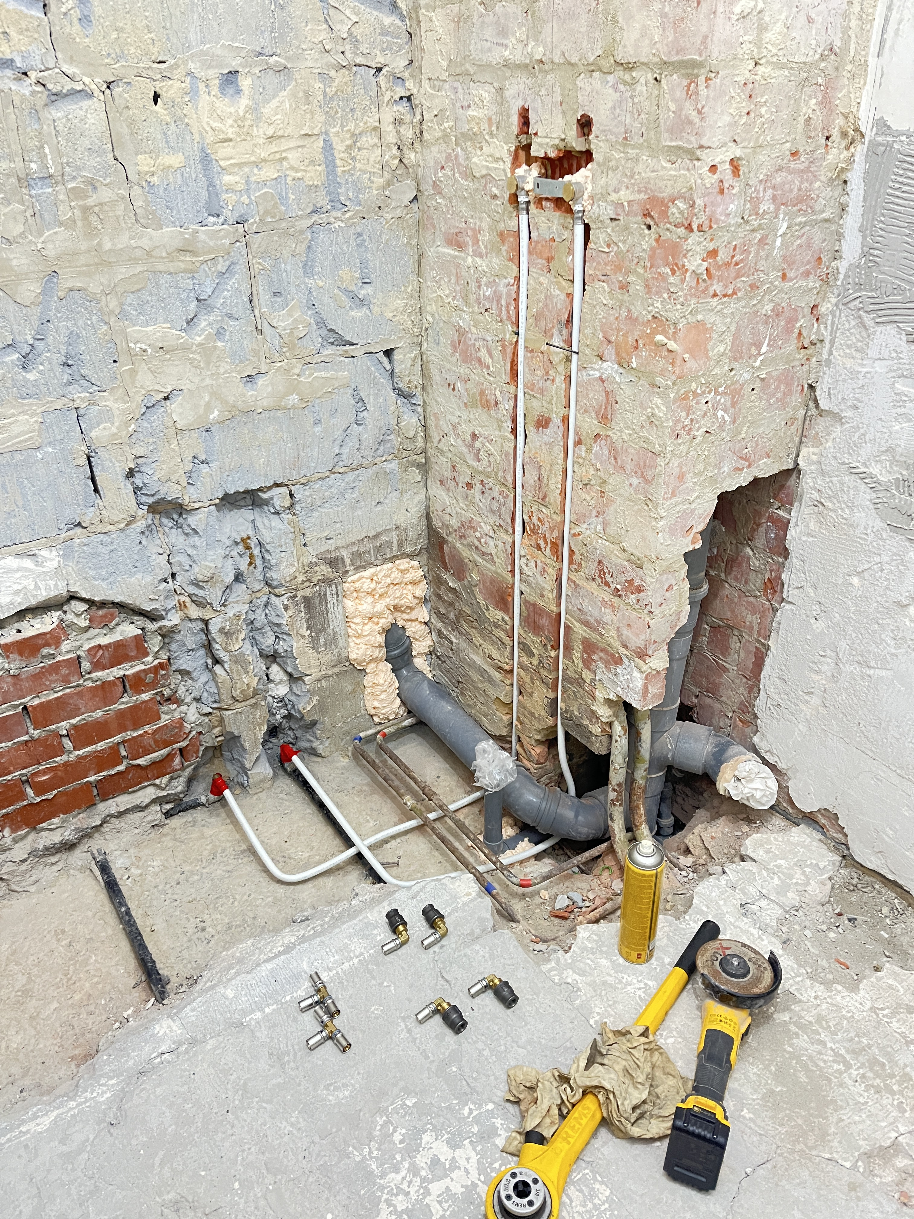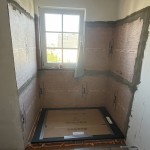 Isolation des murs mitoyens, pose de plaques de plâtre, création d'une dalle de béton armée.