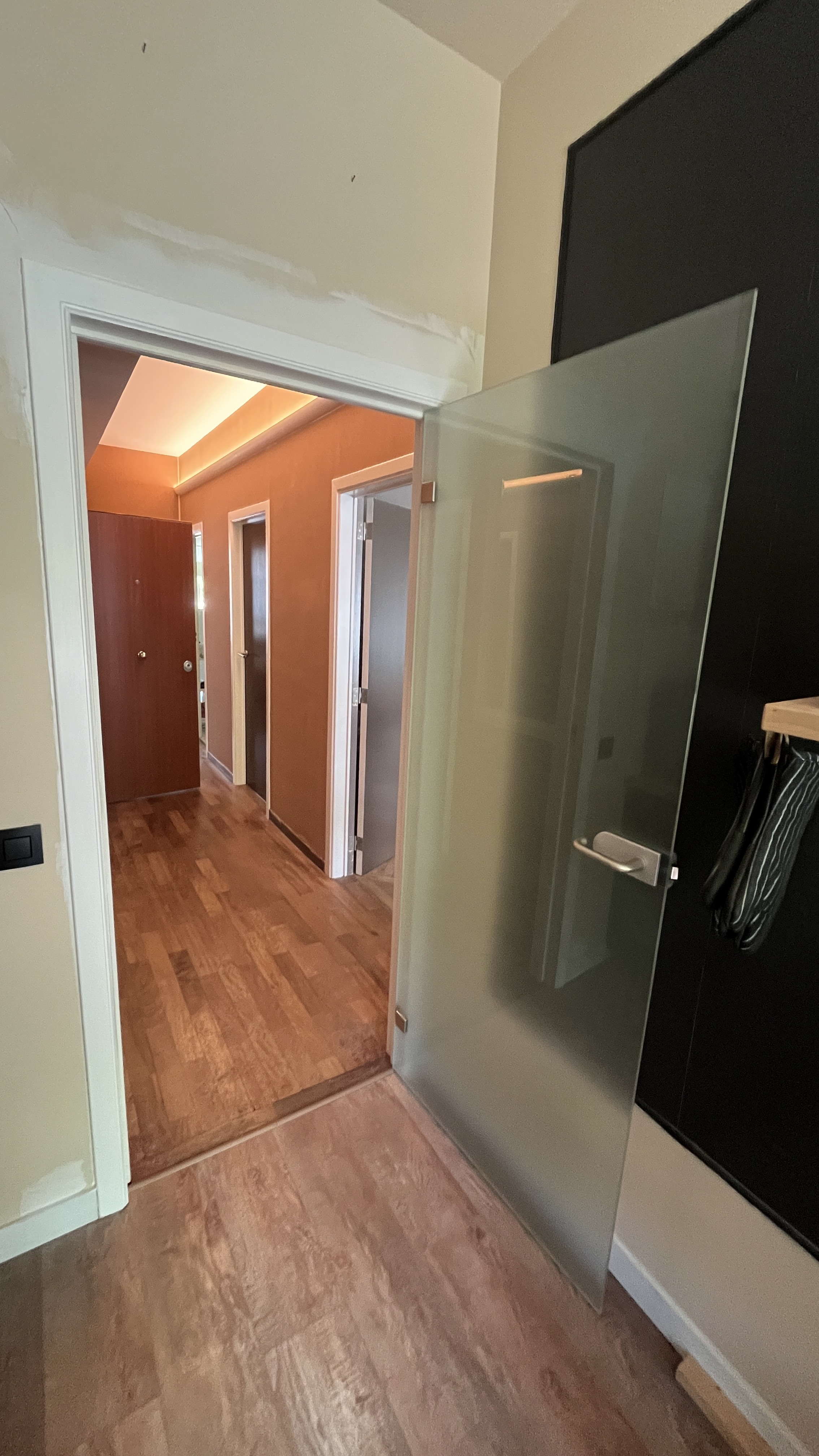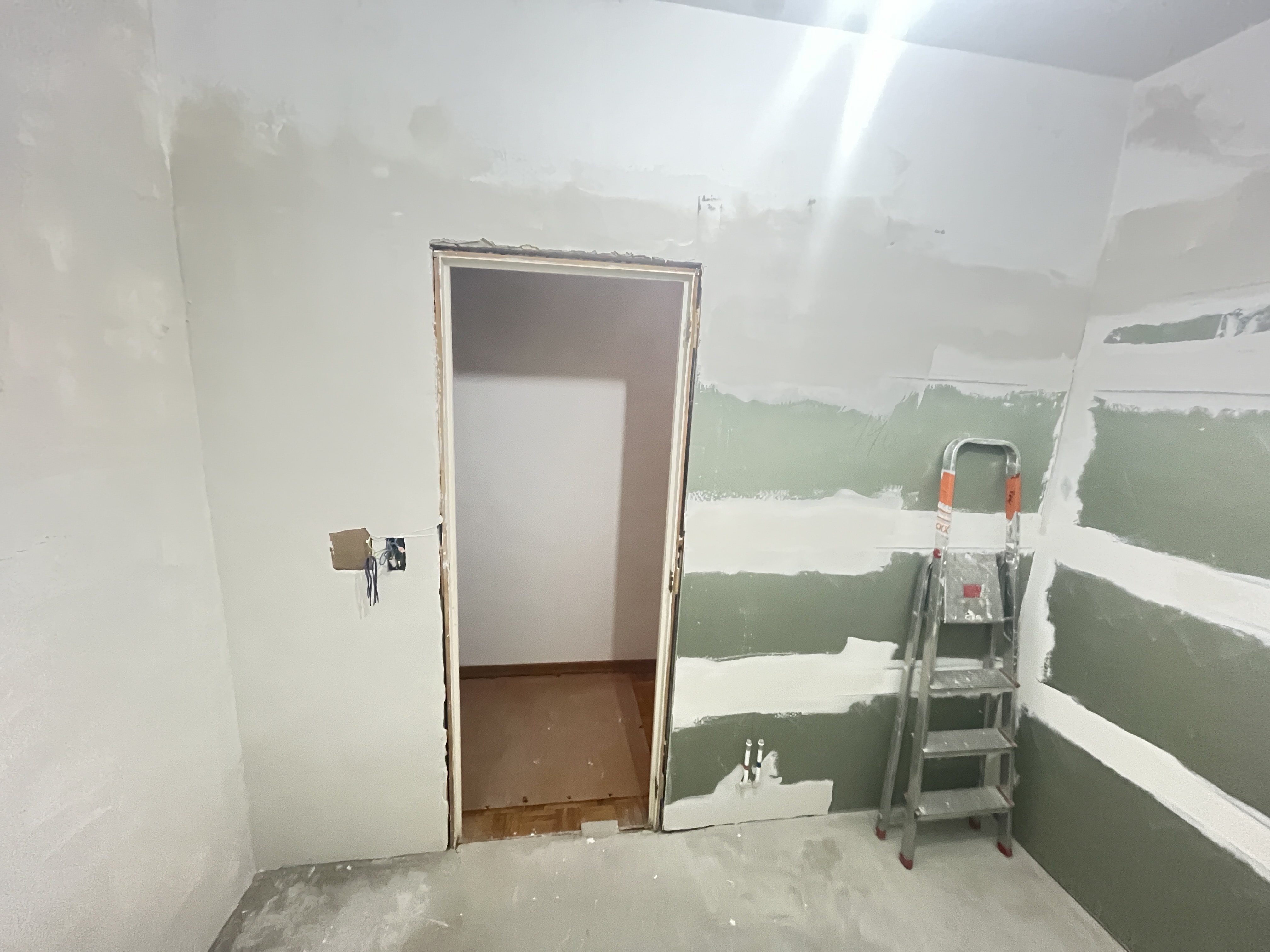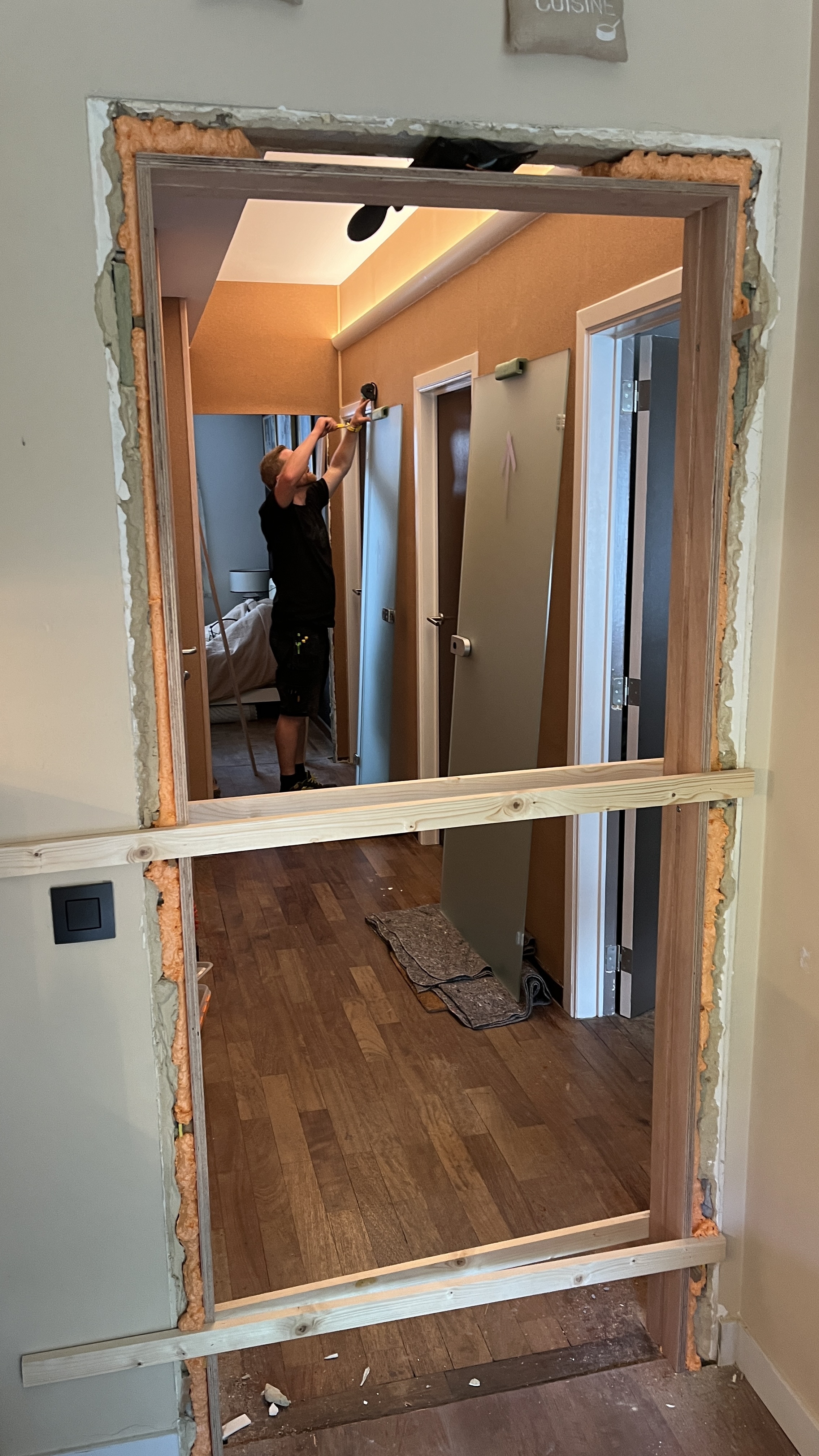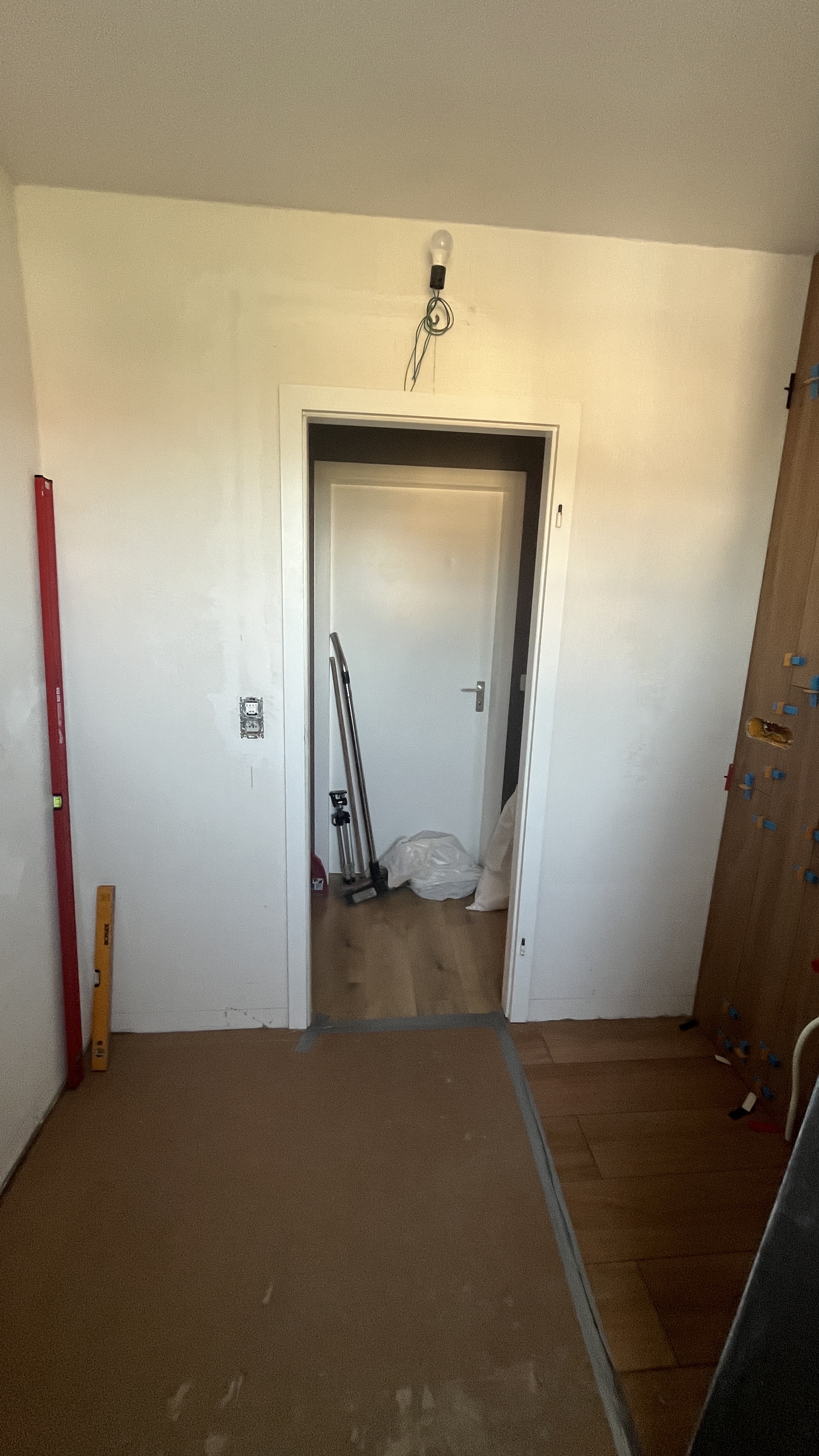 Isolation du sol, pose de parquet flottant et pose de nouvelles portes.