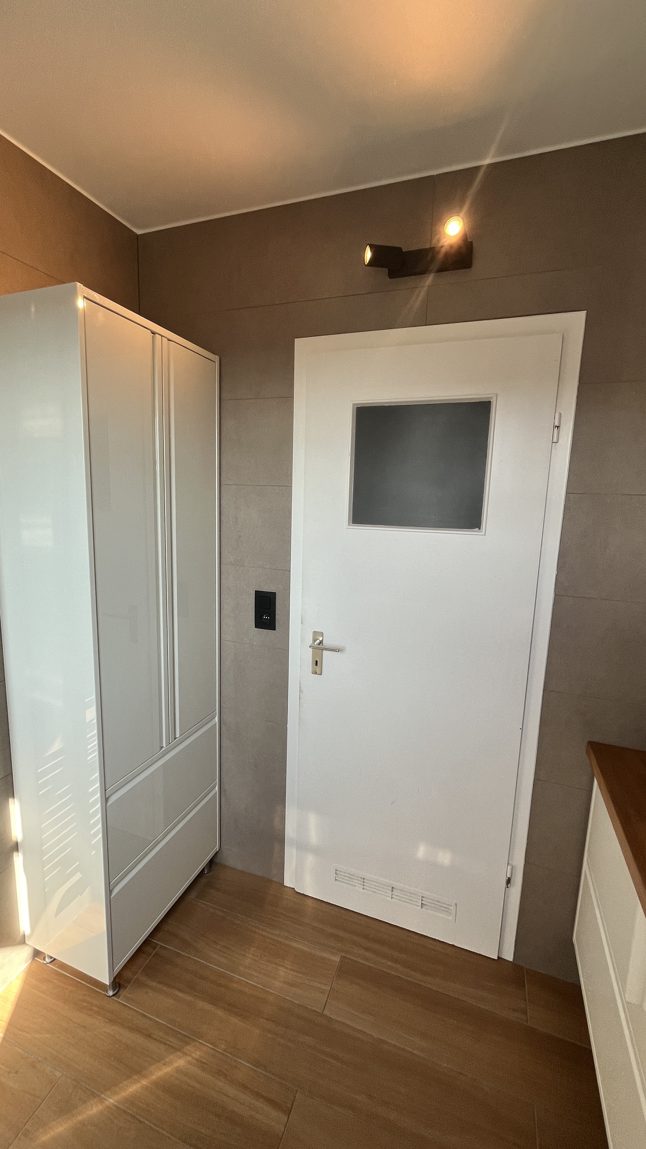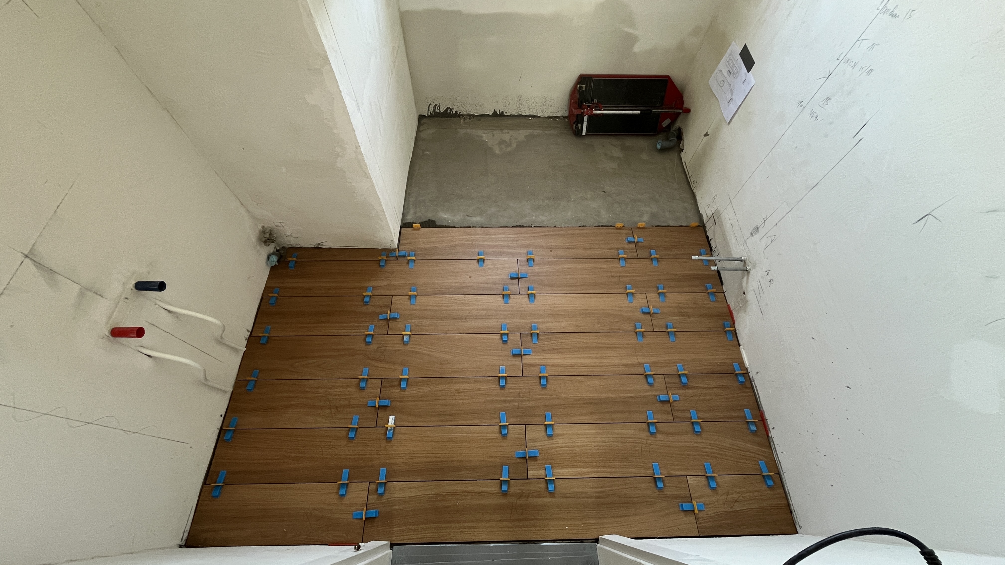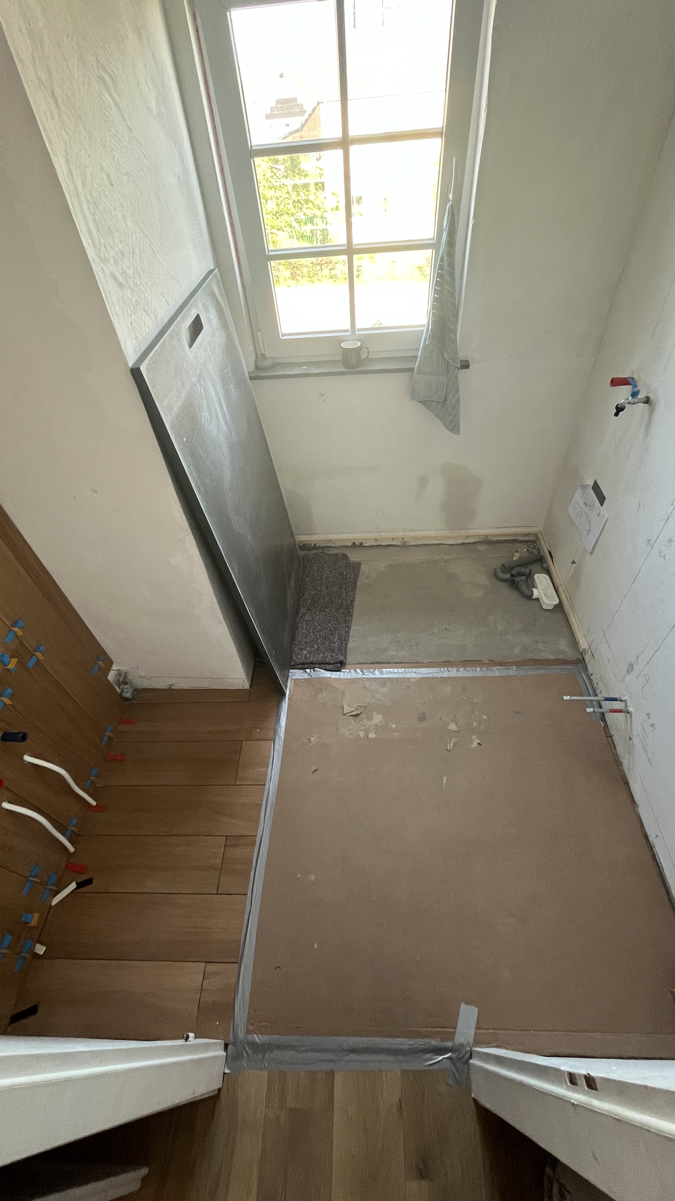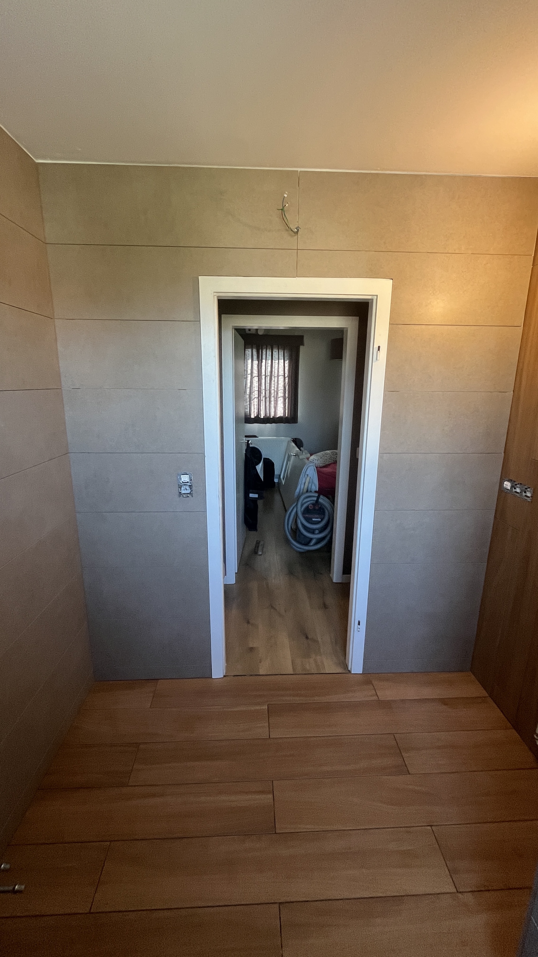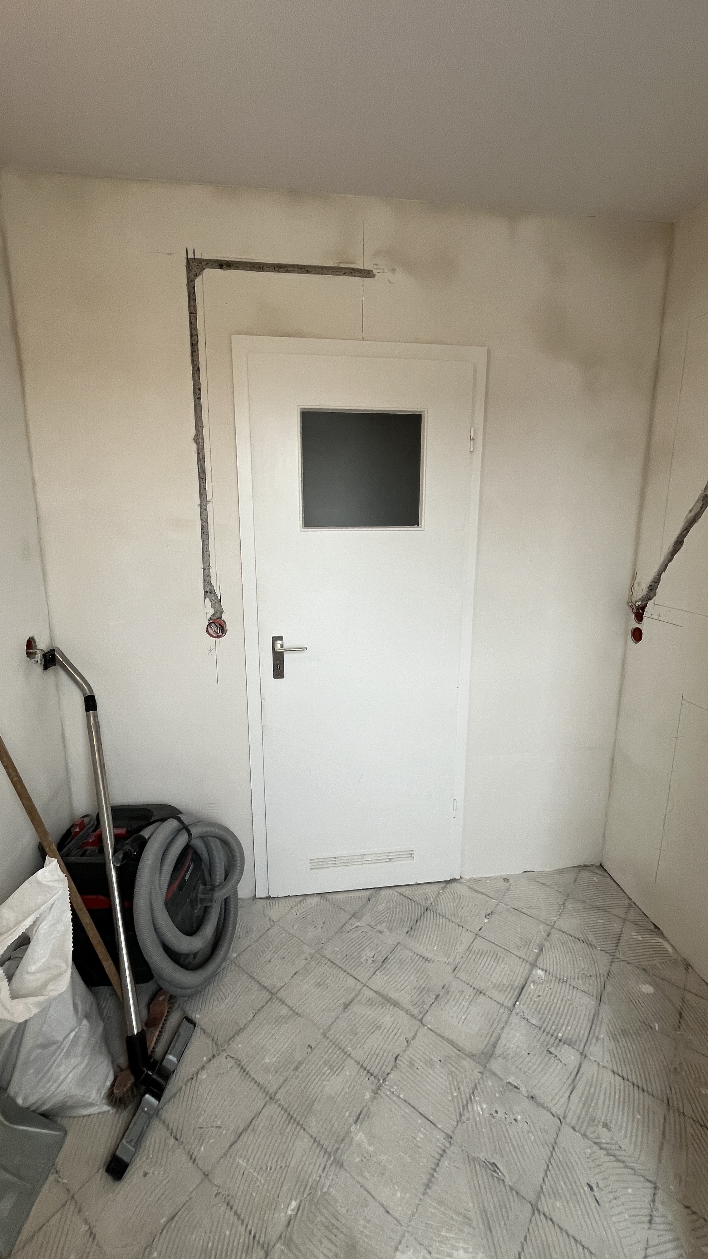 Isolation du sol, pose de parquet flottant et pose de nouvelles portes.