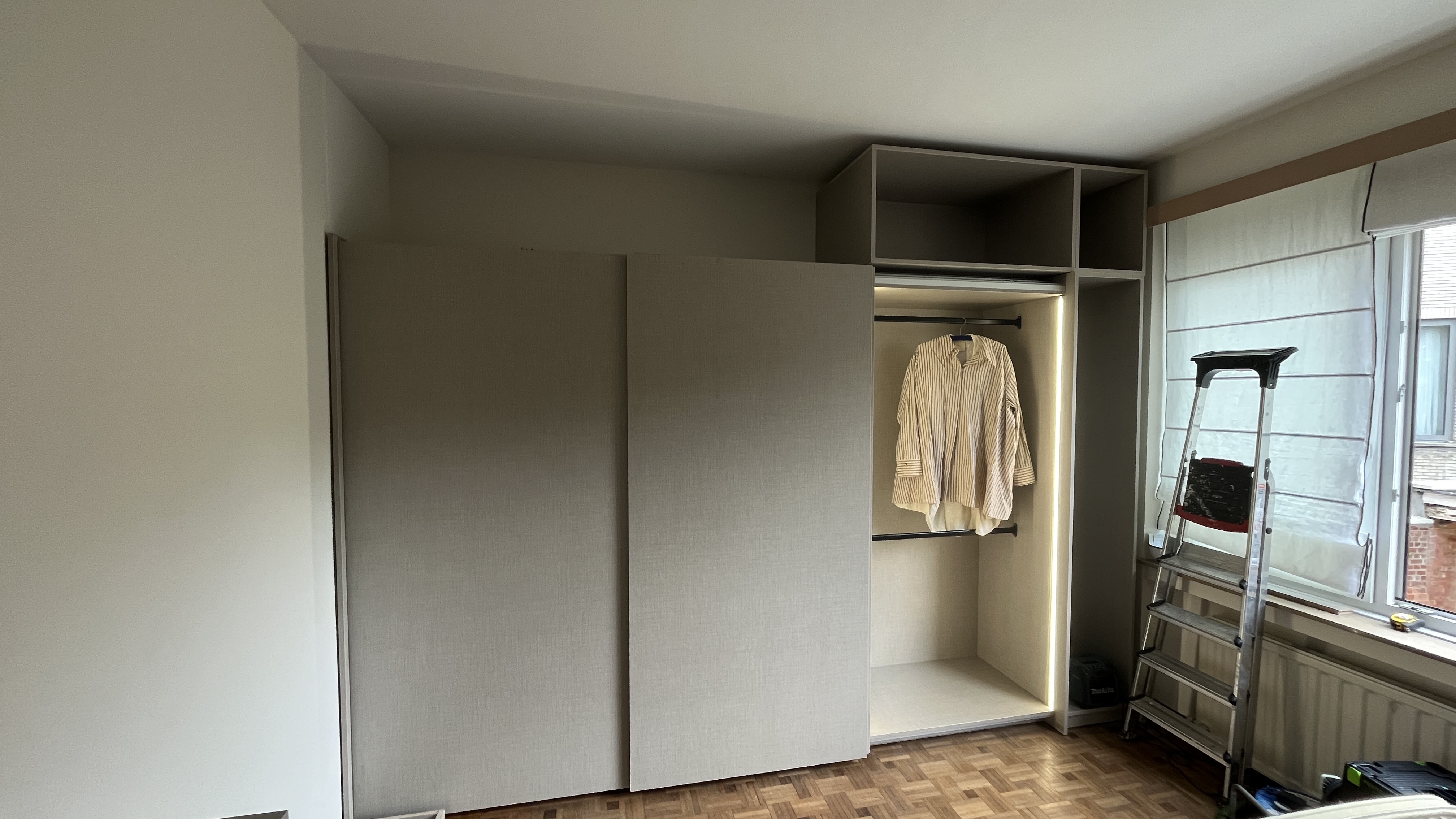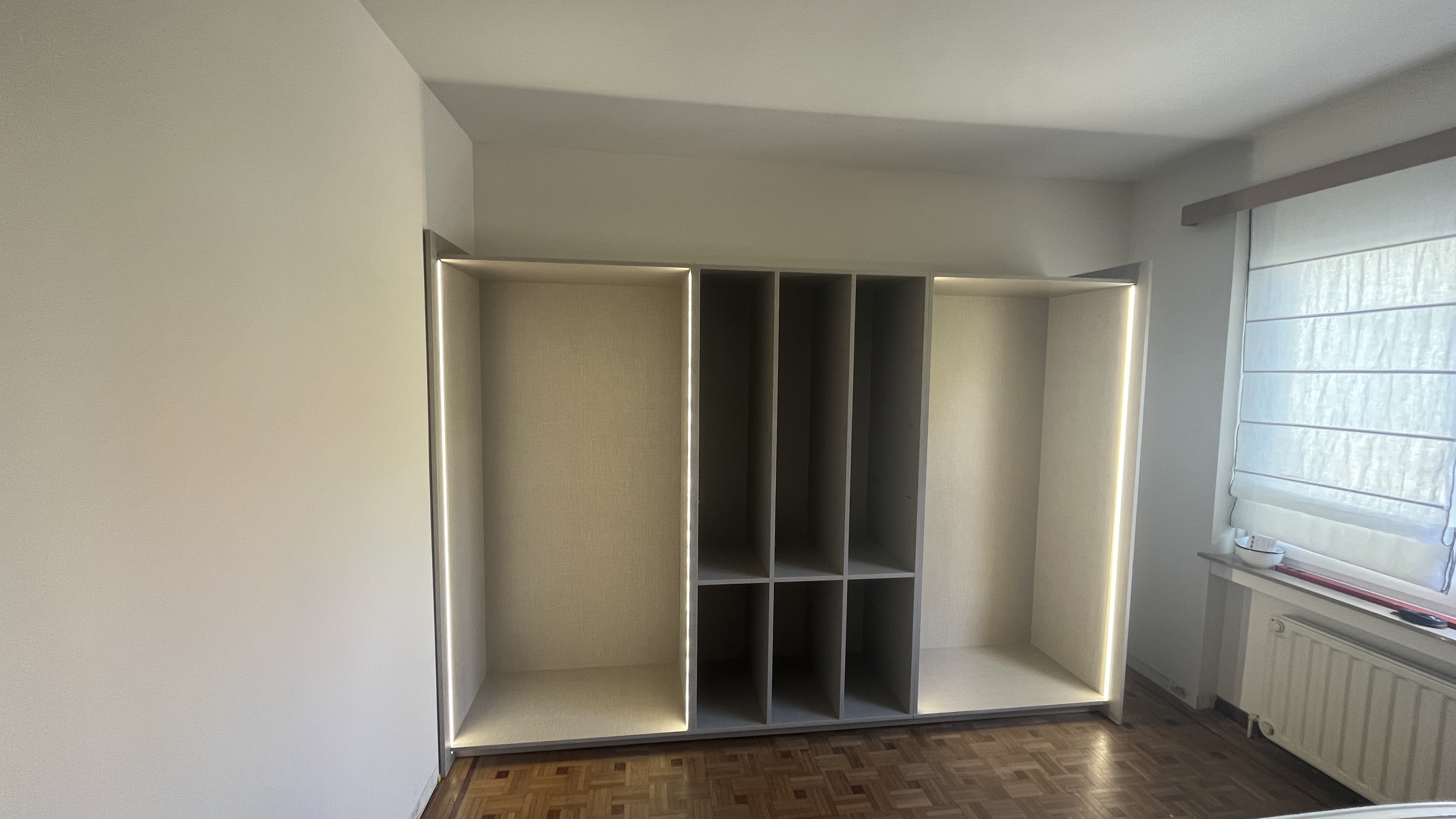 Réalisation d'un dressing sur mesure avec trois portes coulissantes et éclairage intérieur à l’ouverture
