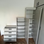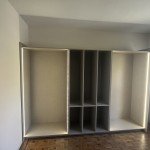 Réalisation d'un dressing entourant et du coup masquant une cheminée.