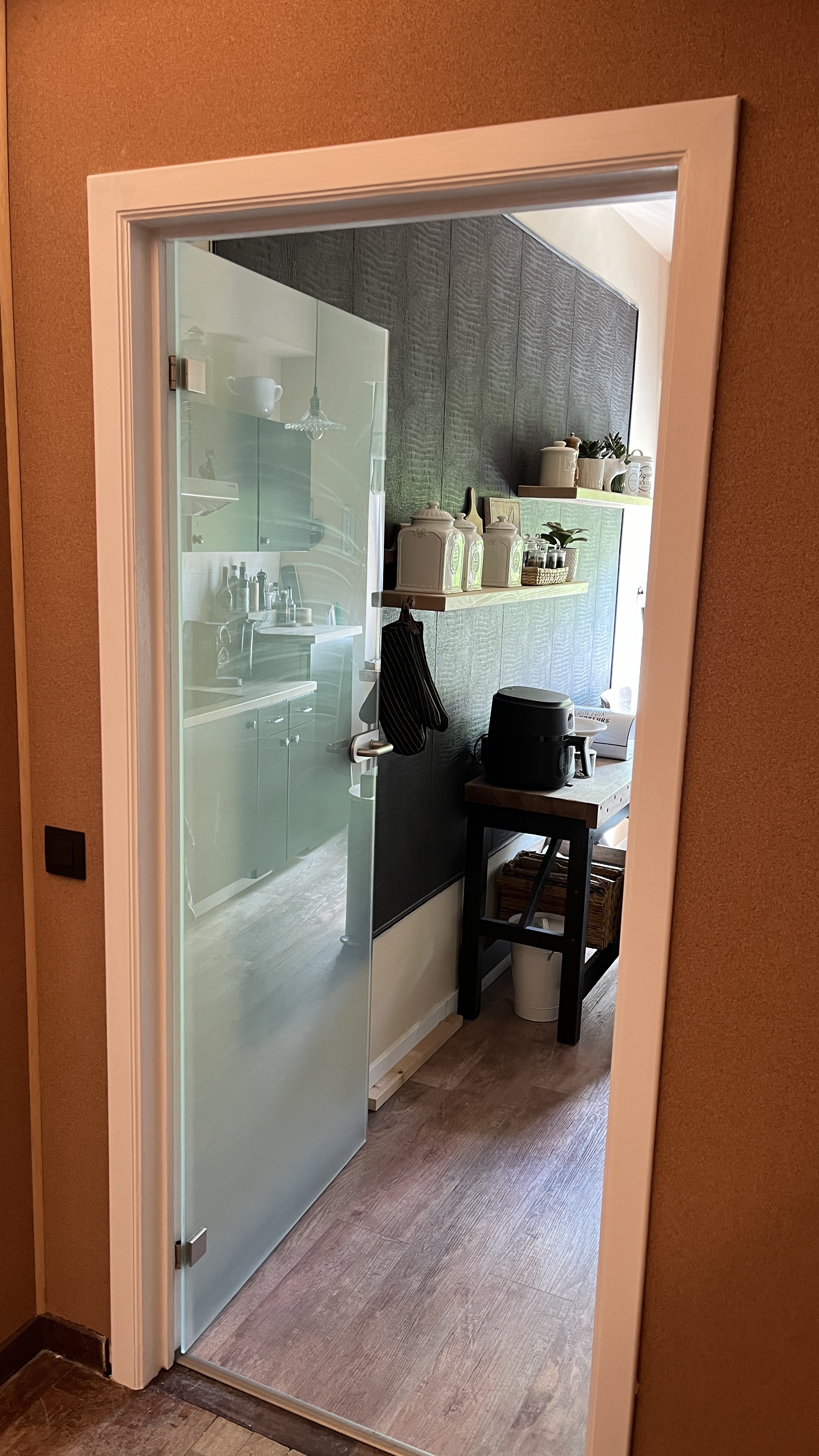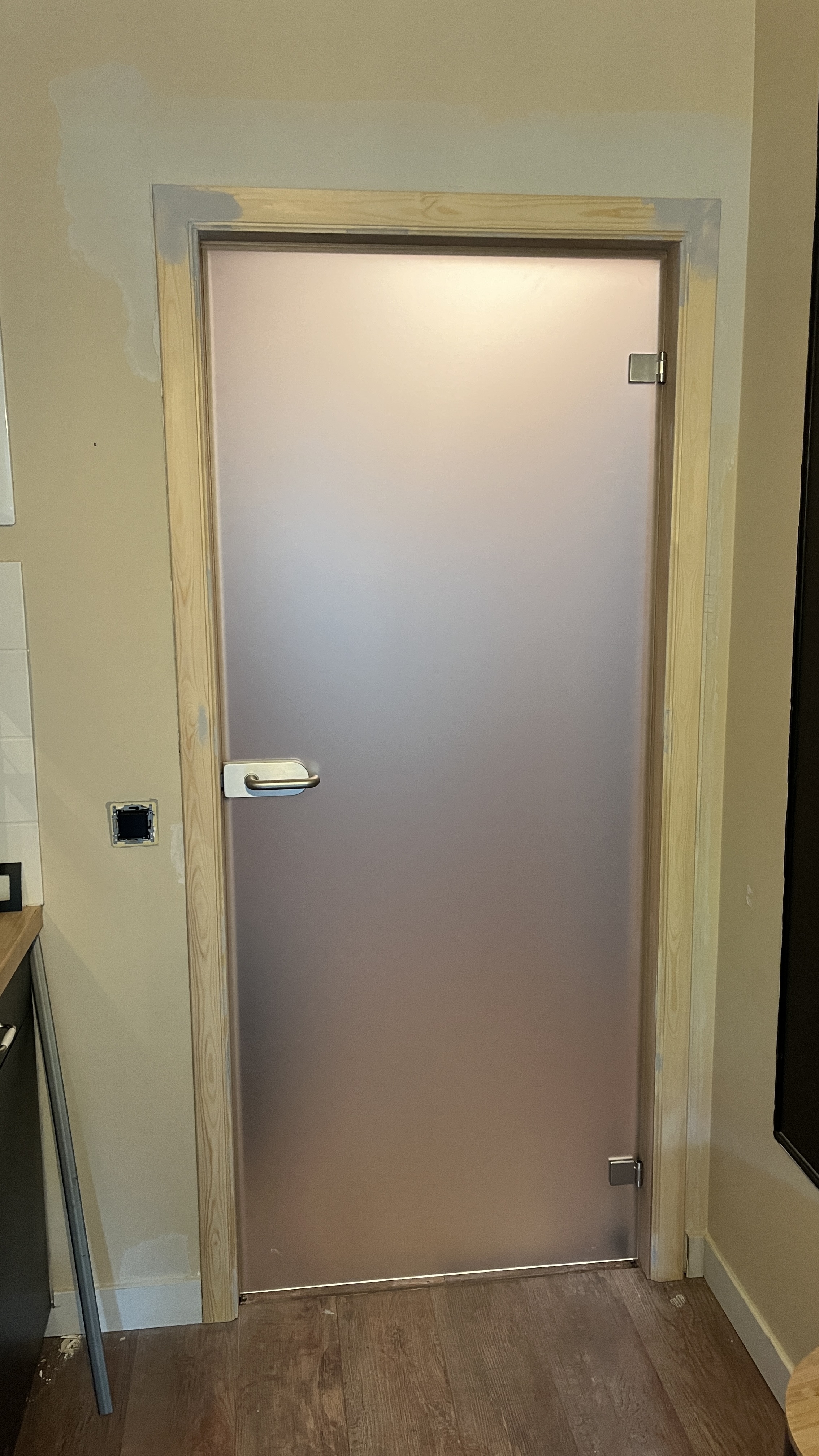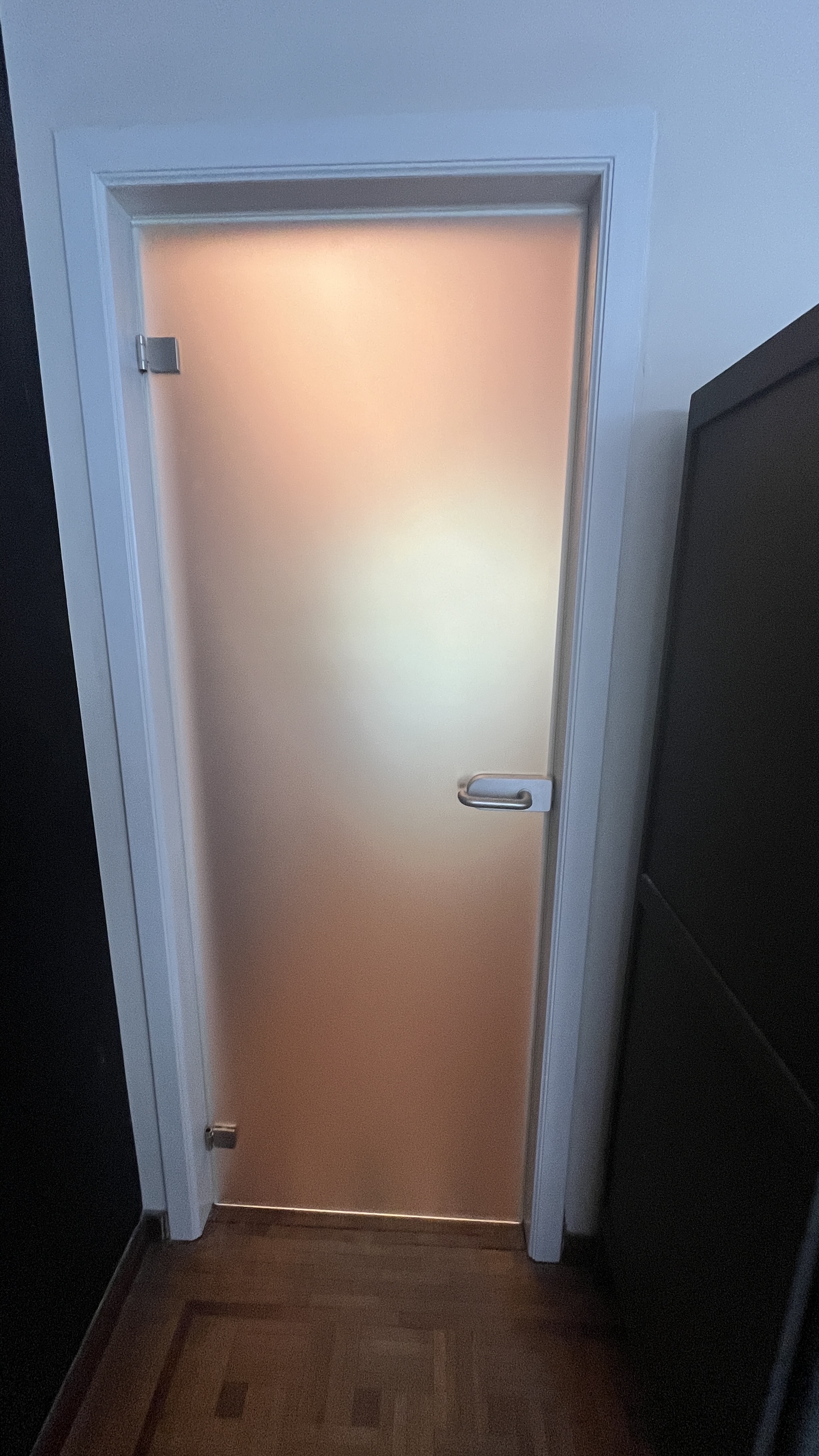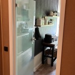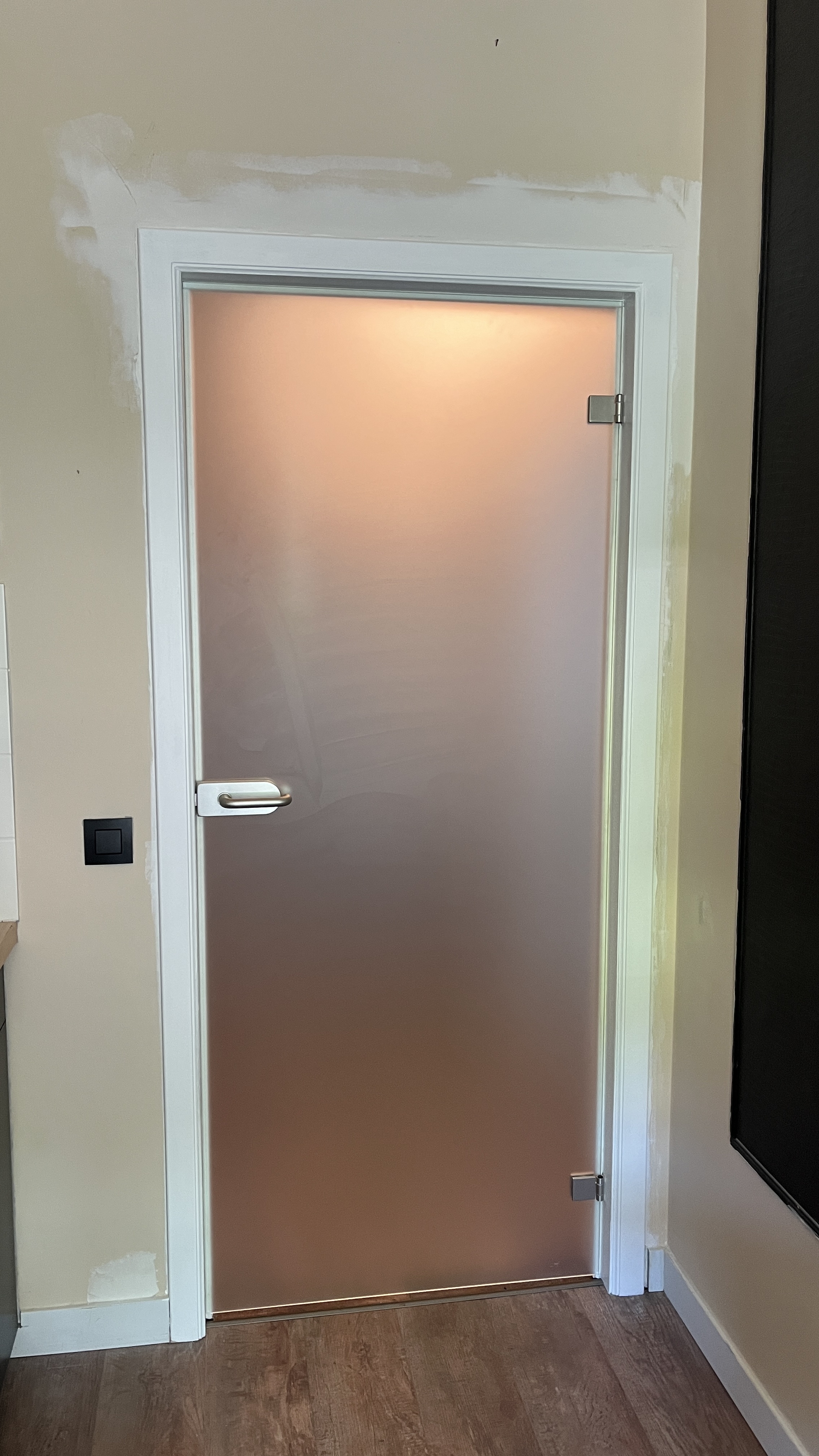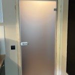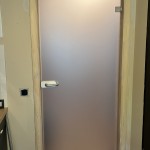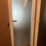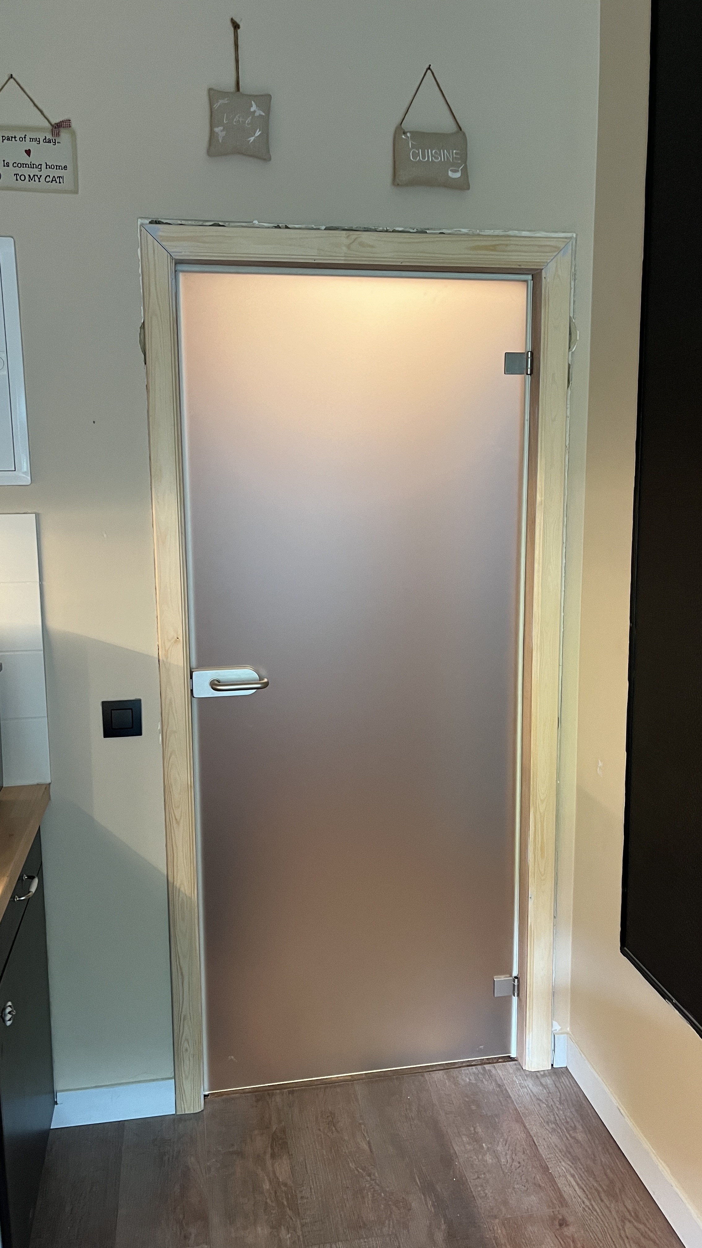 Remplacement d'une vitre de porte par un panneau en mdf, laquage de l'ensemble.